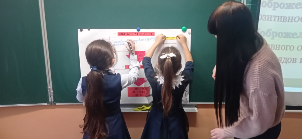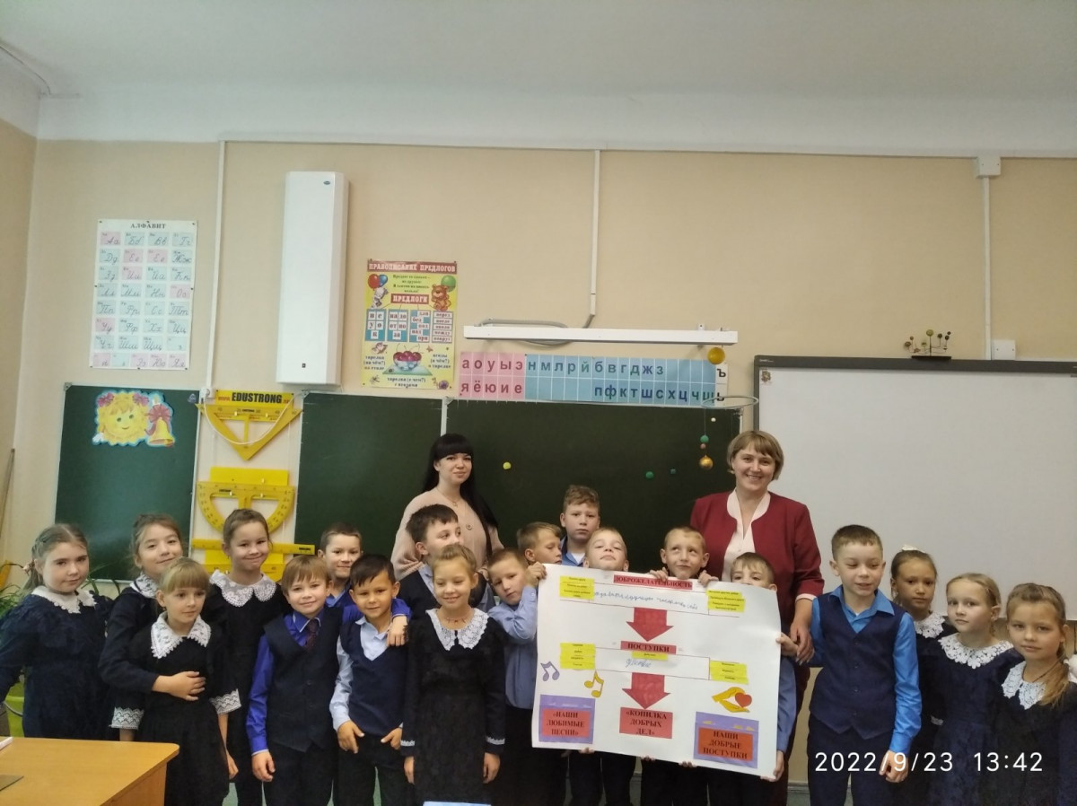 В рамках социального партнёрства Дома культуры «Шахтёр» и МОУ Школа №23 города Черемхово, творческими работниками был организован во 2 классах просмотр киноурока «Хорошие песни» с последующим обсуждением – этической беседой: «Добро и доброжелательность». В рамках беседы, учащиеся сами сформулировали понятия определений: доброжелательность, поступки. Совместно с учащимися был оформлен кластер на тему доброжелательность. В рамках беседы, учащиеся вспомнили любимые песни, добрые поступки, поговорили о качествах, характеризующих доброго человека, рассказывали истории о своих добрых делах, приводили много примеров. Совместно со взрослыми, ребята приняли решение создать «Копилку добрых дел», которую они будут наполнять в течении всего учебного года своими любимыми песнями и добрыми делами, а в конце года подведут итог на семейном празднике, который было решено назвать «Хорошие песни».