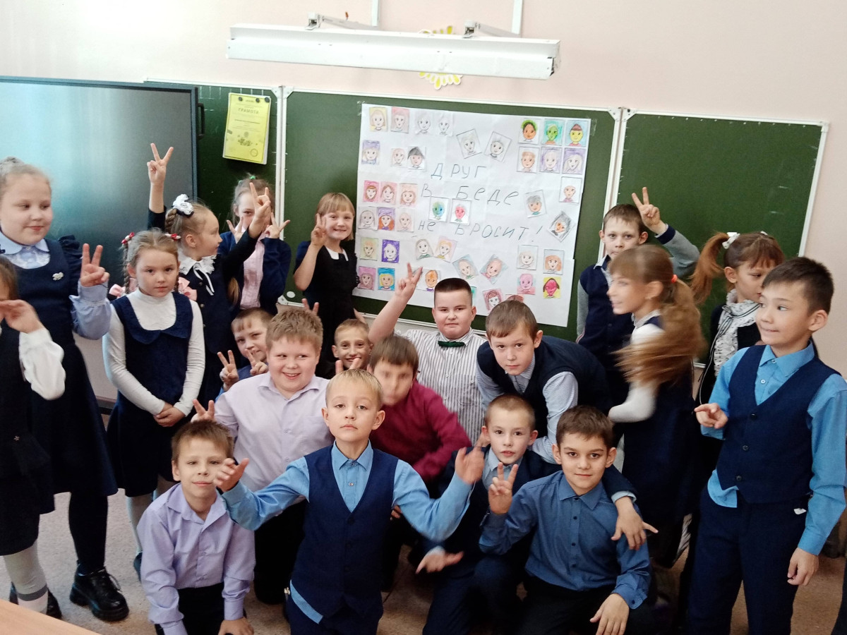 Учащиеся 2а класса МОУ Школа № 15 города Черемхово посмотрев фильм «Друг в беде не бросит», обсудили сюжет, где подчеркнули способность детей поддерживать друг друга, оказывать посильную помощь, заботиться, беспокоиться друг о друге. А также, что взаимопомощь основана на врожденном чувстве человеческого единства, на понимании о любви к ближнему. Для сплочения детского коллектива провели коммуникативный тренинг «Радость общения», «Я рад общаться с тобой». С поставленными перед собой задачами : сформулировать понятие "дружба"; определить, какими качества должен обладать настоящий друг; выработать правила дружбы; практиковать навыки взаимопомощи при решении различных проблем; развивать навыки работы в сотрудничестве, ребята справились. В завершении занятия ребятам было предложено создать портрет друга. Вспомнили пословицы о дружбе, о друзьях. «Друг не гриб, в лесу не найдешь», «Друга не теряй, взаймы не давай», «Друга за деньги не купишь», «Дерево живет корнями, а человек друзьями». Портреты выставили на импровизированной выставке для родителей.