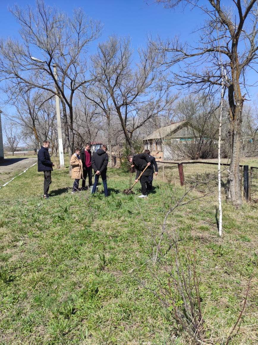 Ребята решили убрать участок школьной территории, где весной они посадили берёзы.