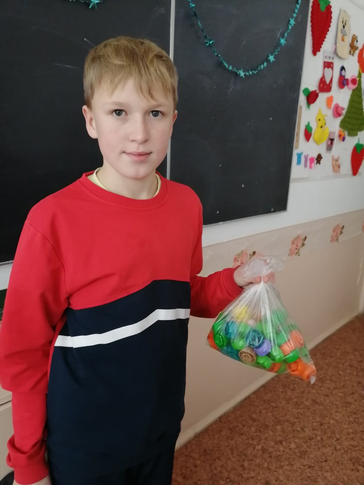 Обучающиеся 6Г класса собрали 4 пакета разных пластиковых крышечек.