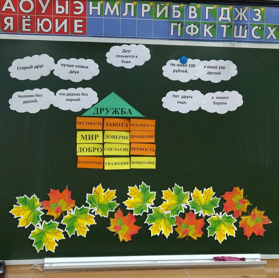 После того как домик дружбы был построен ребята получили задание соотнести начало и конец пословиц на облачках.