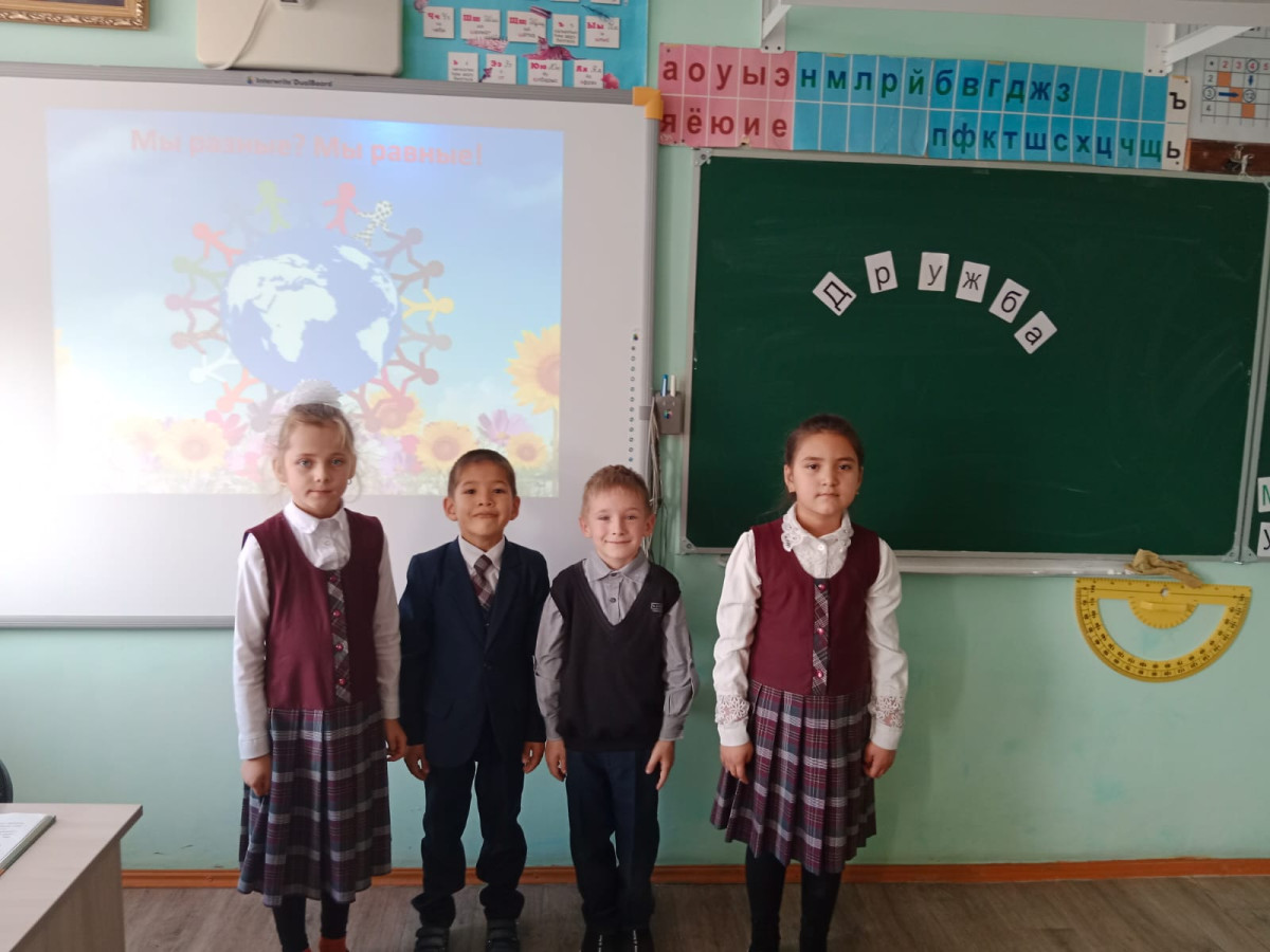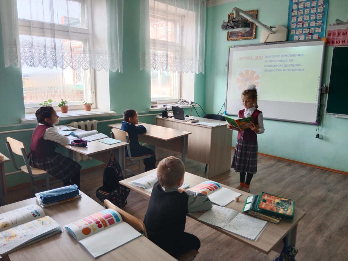 Ученики 1в и 2в класса посмотрели фильм "Не трус и не предатель". После просмотра фильма ребята высказали своё мнение о том, что такое дружба, каким должен быть настоящий друг и как бы они поступили в данном случае. Ребята много рассуждали о ценности дружбы, ее важности во взаимоотношениях. Также в ходе урока дети отгадывали загадки на тему «дружба».Читали стихотворений о дружбе и пели песню о дружбе