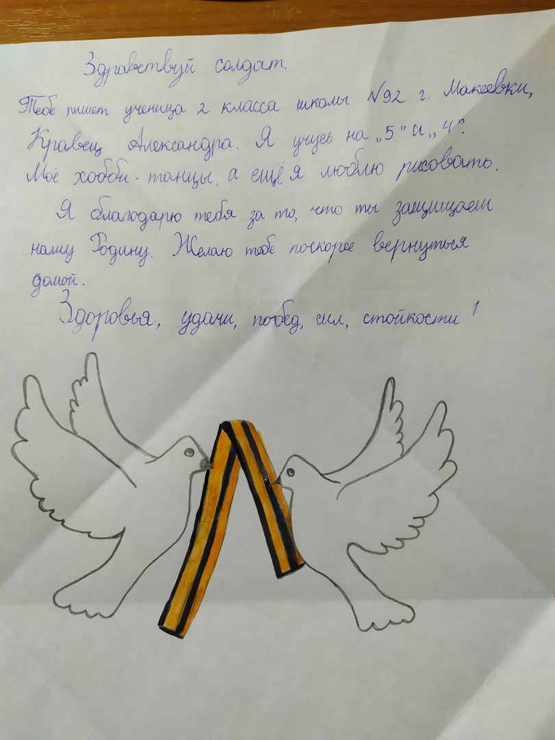 А письма солдатам были отправлены в части, через наших пап, которые с честью выполняют свой долг перед Родиной.