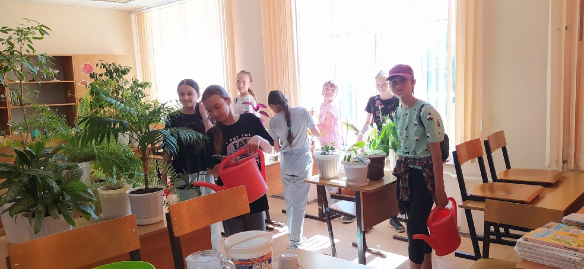 Занимались пересадкой цветов в классном кабинете, а также садили новые цветы, которые вырастили дома с помощью родителей