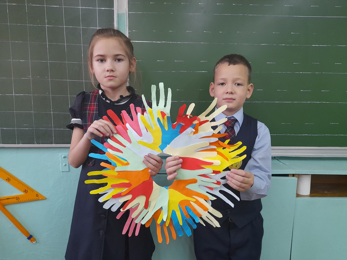Учащиеся 2 класса Г МБОУ "СОШ № 30" посмотрели фильм "Мой танец". Фильм вызвал у ребят много положительных эмоций для обсуждения фильма, но были и отрицательные эмоции по отношению к девочке, предавшей свою подругу. После просмотра ребята сделали вывод, что лучше быть честным и хорошим человеком, чем обманывать и предавать людей, дружить друг с другом и помогать другим . Так же некоторые ребята привели примеры из своей жизни на данную тему. Свои выводы ребята решили изобразить в виде разноцветного солнца из своих ладоней и повесить его в классе.