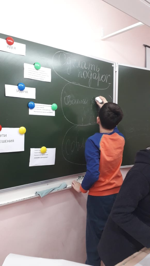 Обсудив фильм, учащиеся отметили, что пред собой в жизни надо ставить цели и задачи, определять пути их достижения, чтобы воплотить свою идею. В предвери праздника День матери, обучающимися было принято за идею - научиться своими руками делать подарки (фоторамку). Идея - сделать подарок, задача - изготовить своими руками. Социальная практика по изготовлению фоторамки проходила в классе.