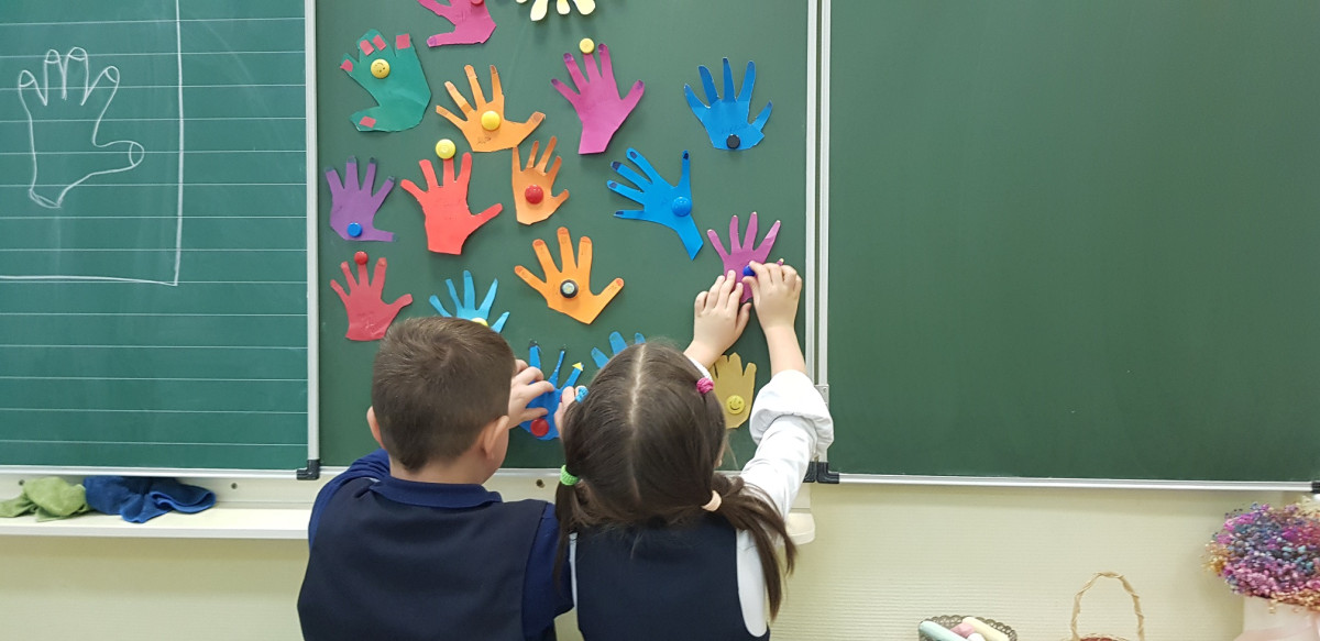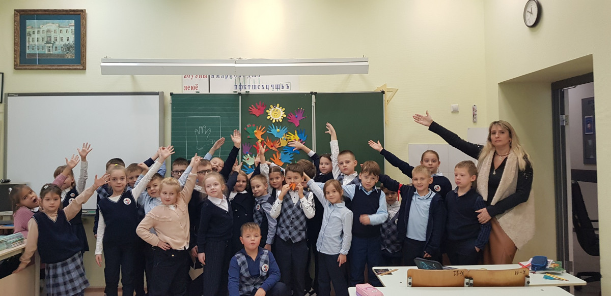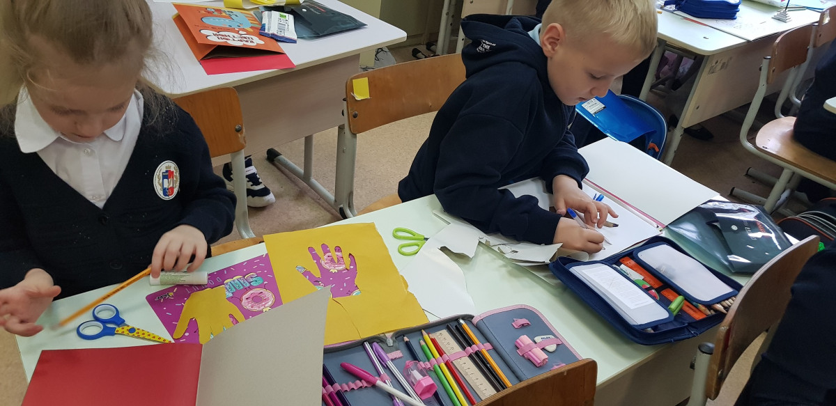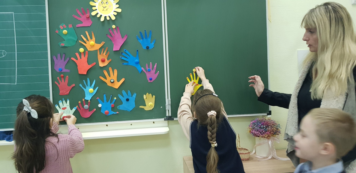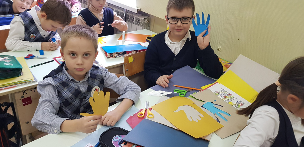 - Ребята предложили встать в орлятский круг и рукопожатием передать искорку своей доброты каждому однокласснику. Обучающиеся из цветной бумаги сделали ладошки, которые переплетались друг с другом как ручки друзей.