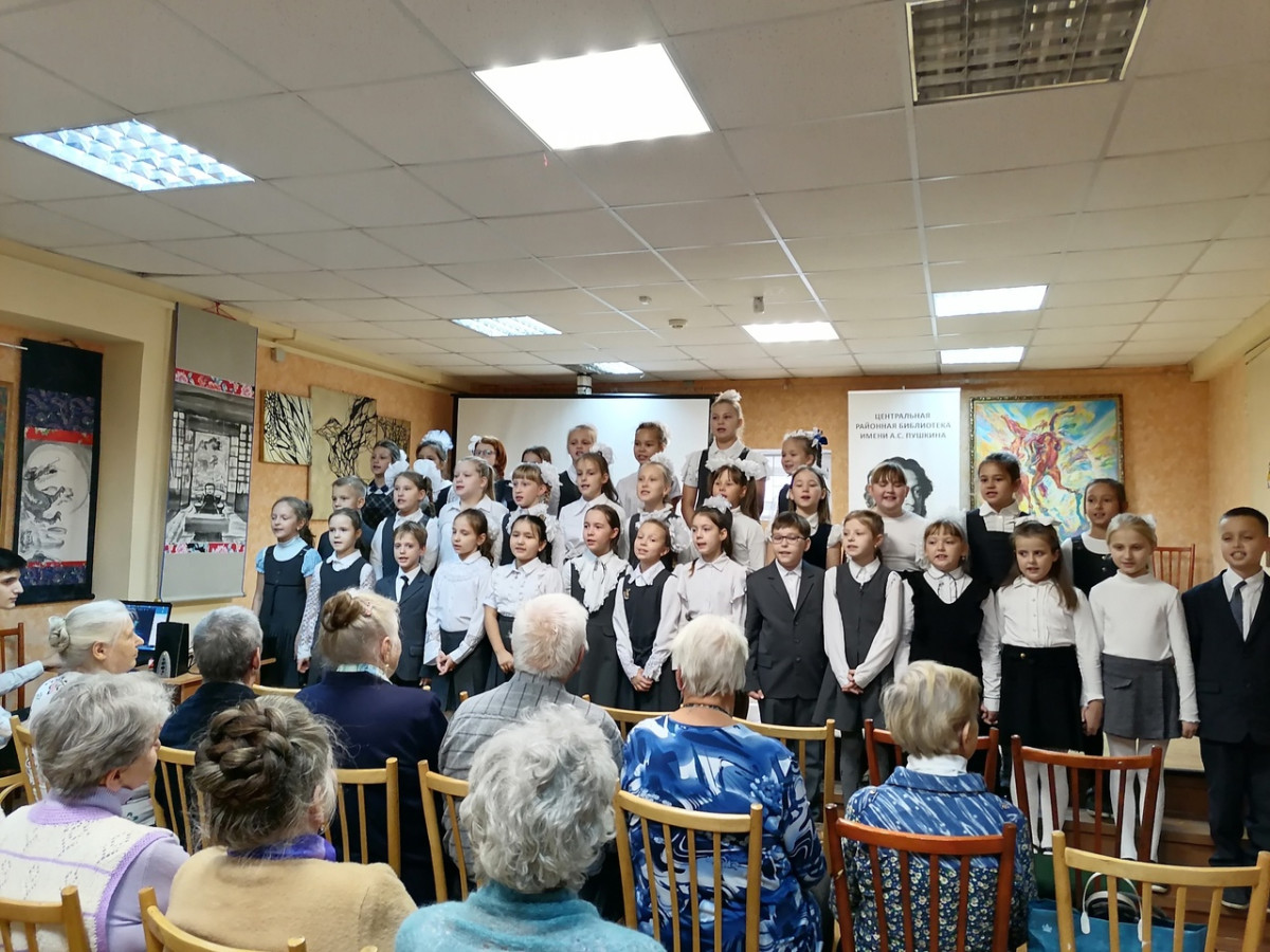 Для участников встречи учащимися школы № 115 был подготовлен концерт. Люди старшего возраста очень любят когда перед ними выступает молодежь. И у всех вызвало восторг и слезы умиления выступление детского хора под руководством музыкального руководителя Альбины Павловны Карташовой. В очередной раз порадовали гостей библиотеки Федор Попов игрой на виолончели и Гарик Пашаян виртуозной игрой на барабане. Были и стихи и песни... Зал был очень благодарен артистам и проводил их бурными аплодисментами, не остались они и без сладостей...
