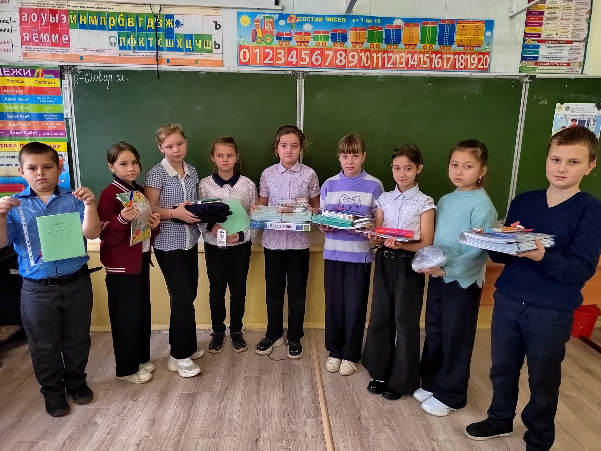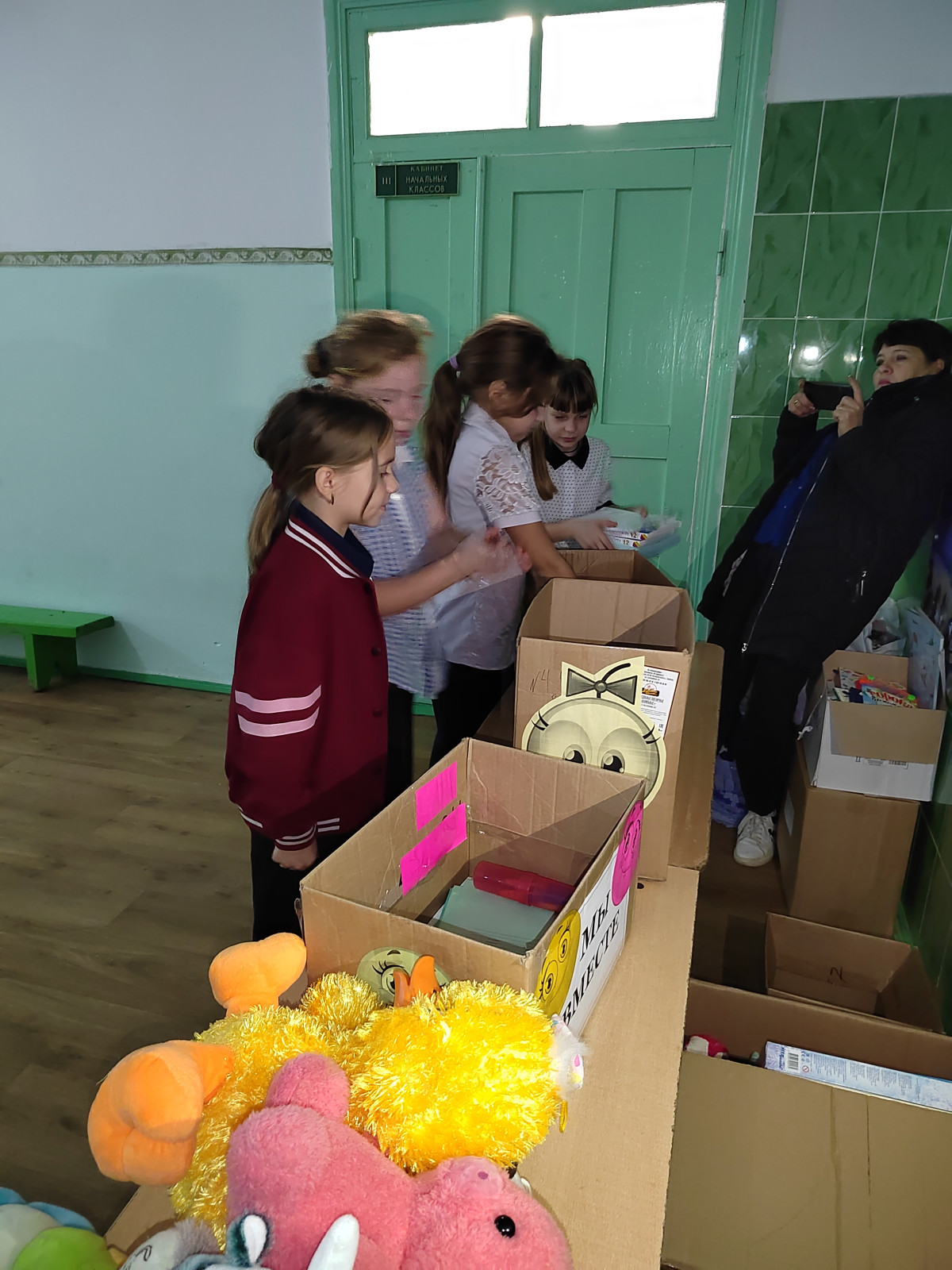 11 ноября 2022 года обучающиеся 4б класса МБОУ ВСОШ №2 приняли участие в акции "Дети Донбасса, Херсонской и Запорожской областей - Дети России". В рамках данной акции обучающиеся передали детям перечисленных областей игрушки, канцелярские принадлежности, наборы для творчества, настольные игры. Пожелали здоровья, добра и мирного неба над головой.