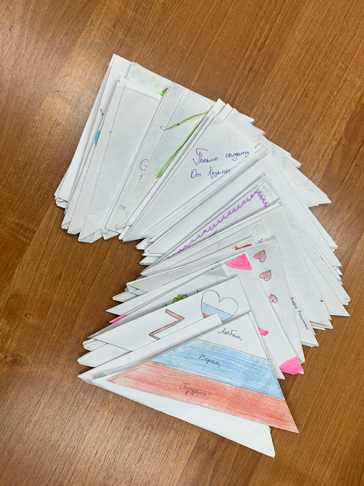 3.Были написаны письма солдатам и организован сбор и отправка гуманитарной помощи.