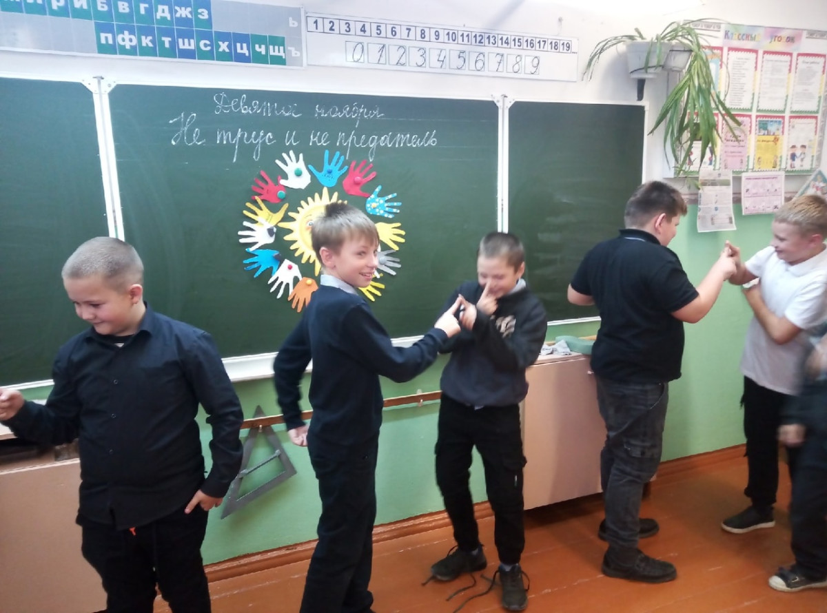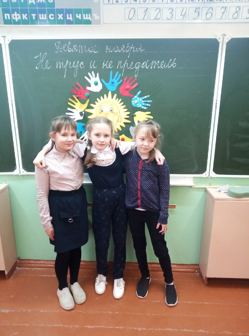 9 ноября в рамках проекта «Киноуроки в школах России» для обучающихся 4 класса МБОУ ВМР «Гончаровская средняя школа» был организован просмотр фильма "Не трус и не предатель", снятый по одноименному рассказу из книги Елены Дубровской «Детская книга о самом главном». Фильм вызвал у ребят живой эмоциональный отклик. Они много рассуждали о ценности дружбы, ее важности во взаимоотношениях и пришли к выводу, что важно дорожить дружбой и уметь дружить. Для развития социально-личностных взаимоотношений, а также на сплочение детского коллектива и установление позитивных взаимоотношений между детьми проведена игра «Рука к руке», выполнена коллективная творческая работа «Пять добрых слов другу».