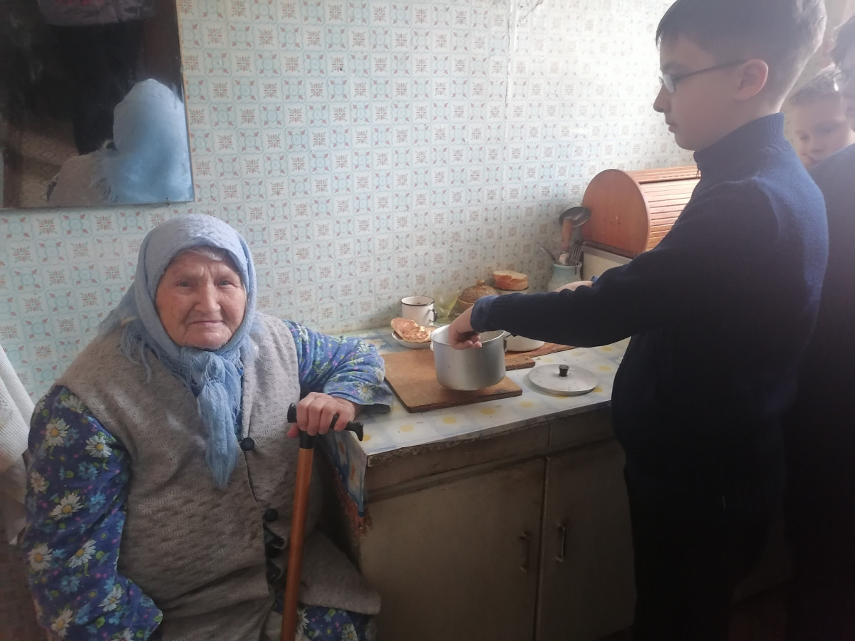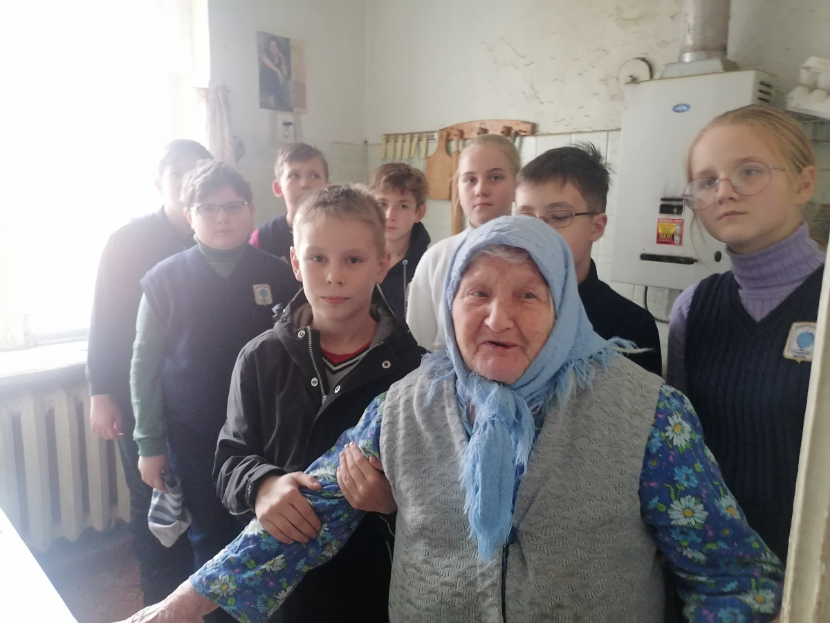 Инициатива исходила от детей и родителей. Школьники приняли участие. Помогли бабушке 90 лет убраться в квартире. Принесли торт, читали стихи. Дети дома расказали как оказали помощь в делах, своими поступками принесли бабушке радость; эти чувства прошли через мысли учащихся, были приняты сердцем и превратились в добрые, красивые поступки.