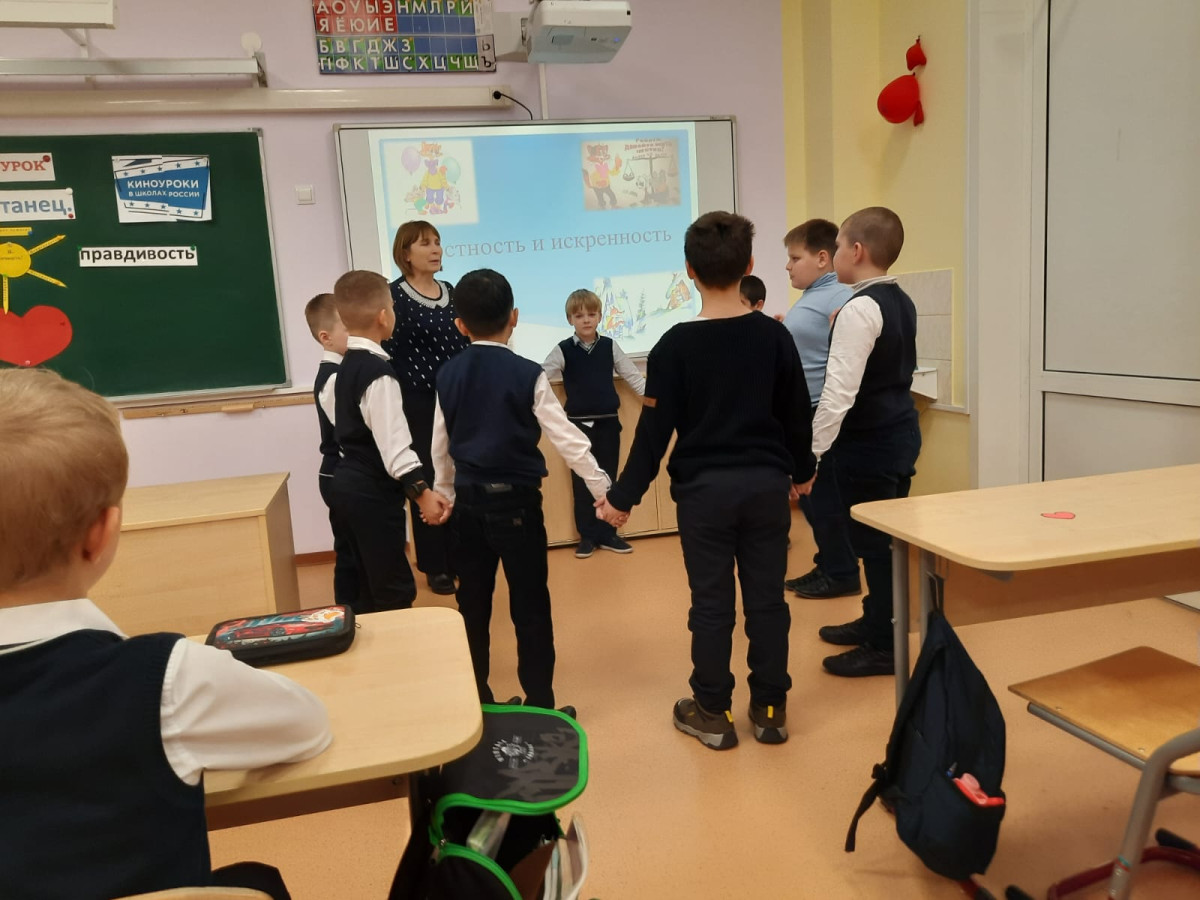 В ноябре месяце 2 Е класс посмотрел фильм "Мой танец". После просмотра фильма было бурное обсуждение по поведению Полины. Также была проведена беседа про честность и как она важна в жизни. После всех обсуждений ребята собирали деформированные пословицы о честности и правдивости, раскрывали их смысл. К концу урока был проведён тренинг,,Скажи комплимент однокласснику". Каждый ребёнок подарил своему однокласснику сердечко с пожеланиями ,,будь честен', будь всегда искренним", будь в жизни всегда правдивым", " будь смелым", "найди силу воли признаться, если солгал" и др.