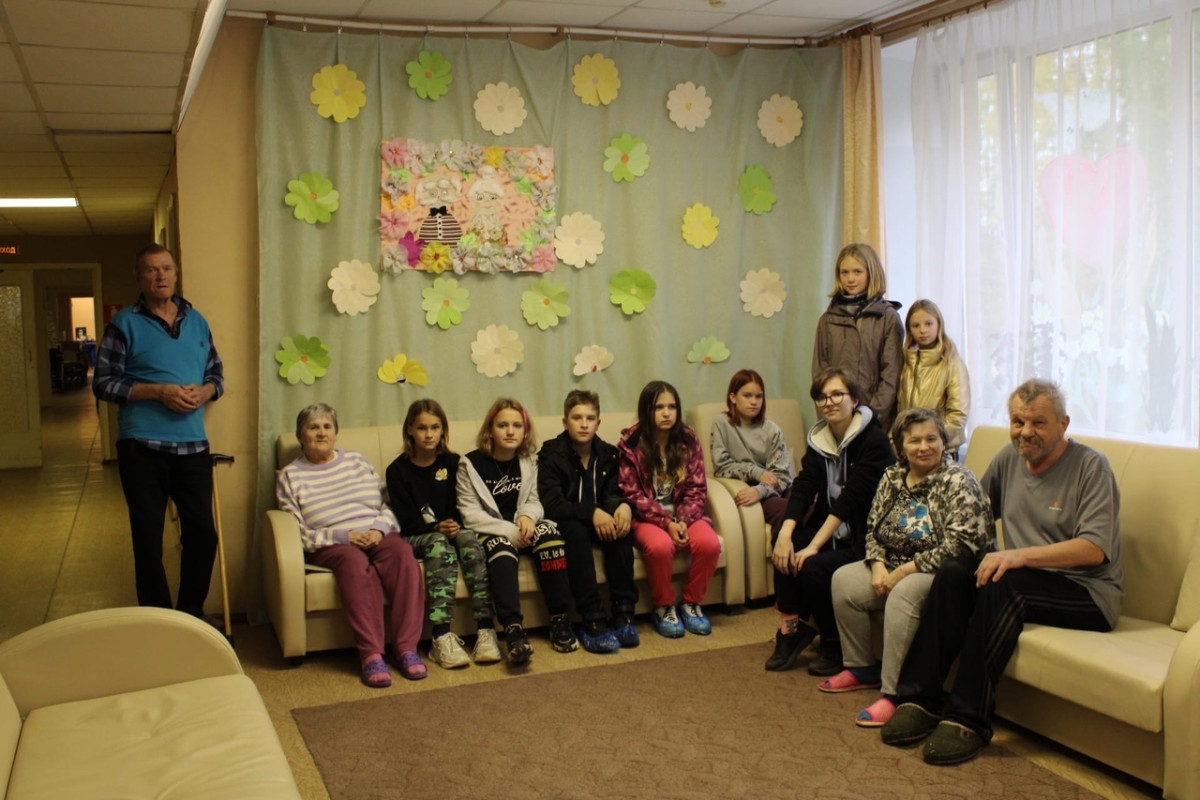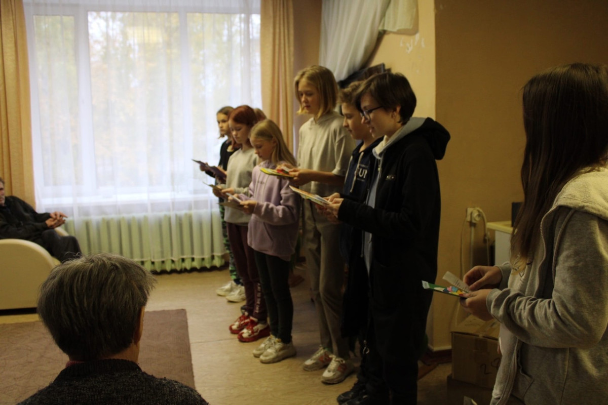 Накануне Дня пожилого человека ученики 3 "А" класса МОУ "Поросозерская СОШ" посмотрели фильм "Песня ветра", который раскрывает тему дружбы.Детям фильм очень понравился .Через дорогу от нашей школы находится отделение временного пребывания Комплесного центра социального обслуживания Суоярвского района.Мы с ребятами уже не первый раз радуем наших бабушек и дедушек.И после просмотра фильма ребята предложили сделать открытки.В это время в школе проходила Акция "Доброе сердце".Наш класс совместно с начальной школой, педагогами и родителями приняли участие.Ребята принесли конфеты, печенье, повидло, канцелярию, носочки и т.д.В этом году в нашей школе появилось волонтёрское движение.Вместе со своим руководителем Удовенко Анной Андреевной ребята отнесли наши гостинцы с двух школ в "Дом милосердия".Добрыми словами учащиеся поздравили всех с Днём пожилого человека.А от бабушек и дедушек ребята услышали слова благодарности.Они были рады, что школьники, педагоги и родители о них не забывают.
