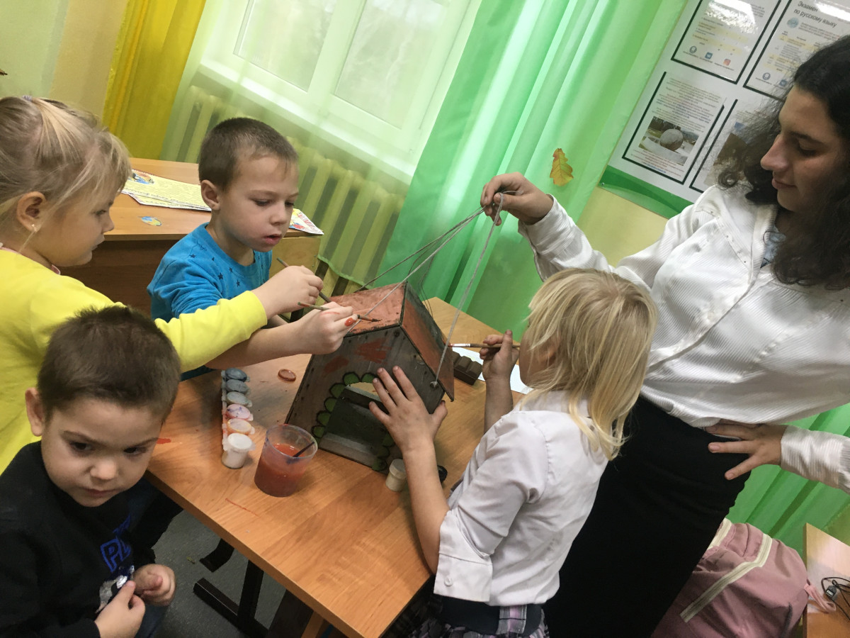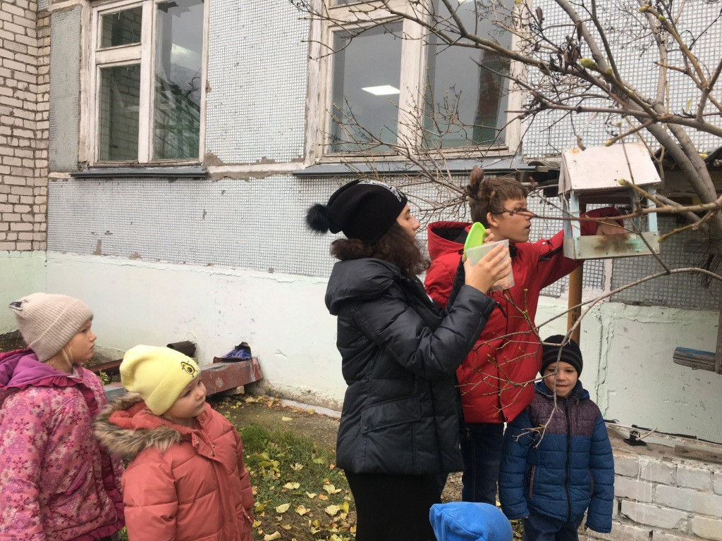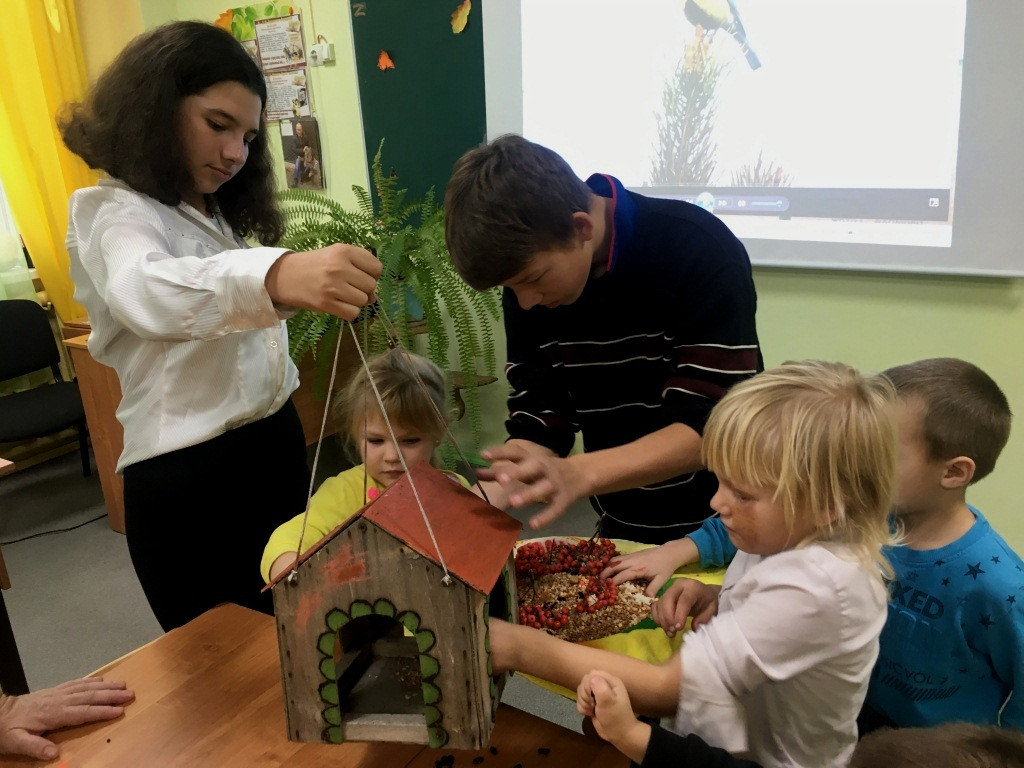 Посмторев фильм "Шайба", учащиеся 8 класса ( и пусть здесь мало проявленного мужества (им было страшно, конечно, впервые самостоятельно проводить урок) , зато есть настоящее доброе дело!) загорелись желанием провести познавательное экологическое занятие с малышами дошкольной группы: они провели с ними праздник "Синичкин день". Показали видеофильм о синицах нашего края, провели познавательные игры, отремонтировали и покрасили старые кормушки, развесили их и помогли малышам насыпать "правильный" корм птицам. В мероприятии участвовали дошколята, ученики0 ЭКОволонтёры, библиотекарь, родители, а в качестве куратора и эксперта выступил учитель географии Шершина М.А. Старшеклассники помогли малышам: ведь они не смогли бы самостоятельно смастерить кормушки, починить старые и развесить их повыше на деревьях (от кошек и собак). Дети остались очень довольны, они помогли пернатым обзавестись собственной "столовой" на весь зимний период!