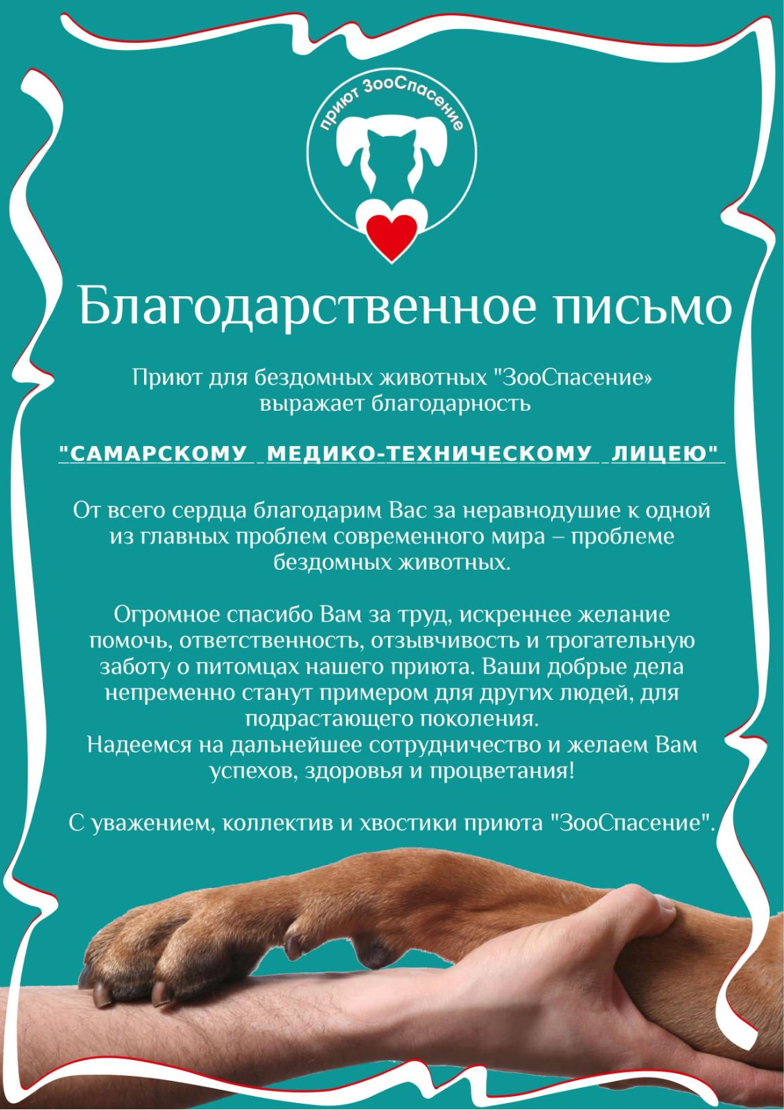 После просмотра фильма было решено отправиться в приют. Эту идею пятиклассников поддержали и ученики 4 класса, которым тоже был предложен для просмотра фильм «Первое дело», и родители, и администрация СМТЛ г.о.Самара.