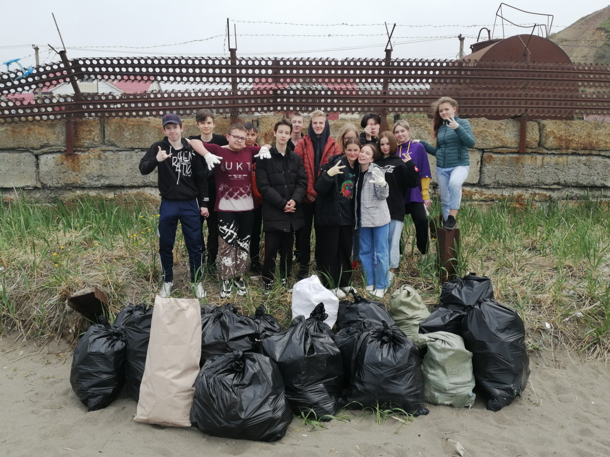 После просмотра фильма "Пять дней" ребята, выдвинули инициативу убрать пляж после летнего сезона. Социальная практика получила название "Чистый берег", в ней участвовали обучающиеся 9 класса. Ребята работали добросовестно, стараясь сделать пляж чище и уютнее для отдыха. Данное мероприятие конечно не решило проблему засорения, но привлекла внимание общественности - обустройство в районне зоны отдыха контейнеров для мусора. Наш девиз:"Только вместе,только дружно,помогать природе нужно!"
