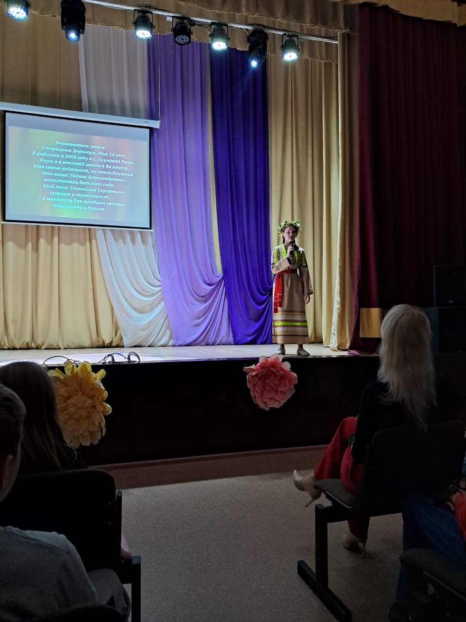 12 ноября в ДК с. Осиновая Речка при поддержке администрации сельского поселения проводился конкурс «Русская краса» среди девушек 14-17 лет. От нашего класса выбрали выступающую Элеонору. Конкурс проводится в очном и заочном формате. Решили помочь Эле в подготовке и участии в конкурсе. Конечно, все понимали, что основную работу делает Эля.
