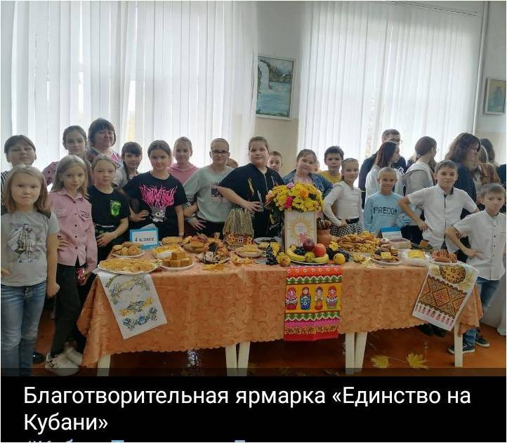 После просмотра фильма «Пять дней» о созидательном труде, учащиеся 4 класса предложили провести сладкую ярмарку. Ребята вместе с родителями напекли сладостей и провели ярмарку.Все собранные деньги были перечислены в фонд помощи жителям Донбаса.