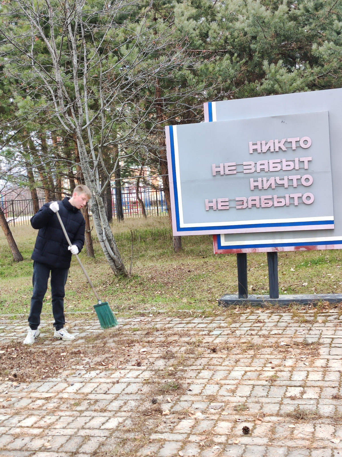 Совместными усилиями старших школьников были очищены от мусора и опавшей листвы парк,непосредственно территория, где стоит обелиск павшим войнам нашего родного села. Учащимся школы было приятно видеть результат своего труда. Они с пользой провели время, получили заряд хорошего настроения и осознание того, что слова на обелиске "Никто не забыт, ничто не забыто" - это не просто слова, а действия спустя столько времени.