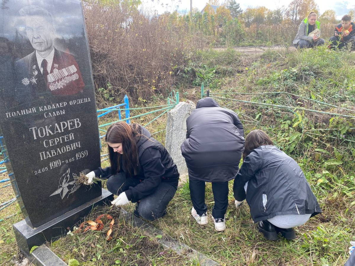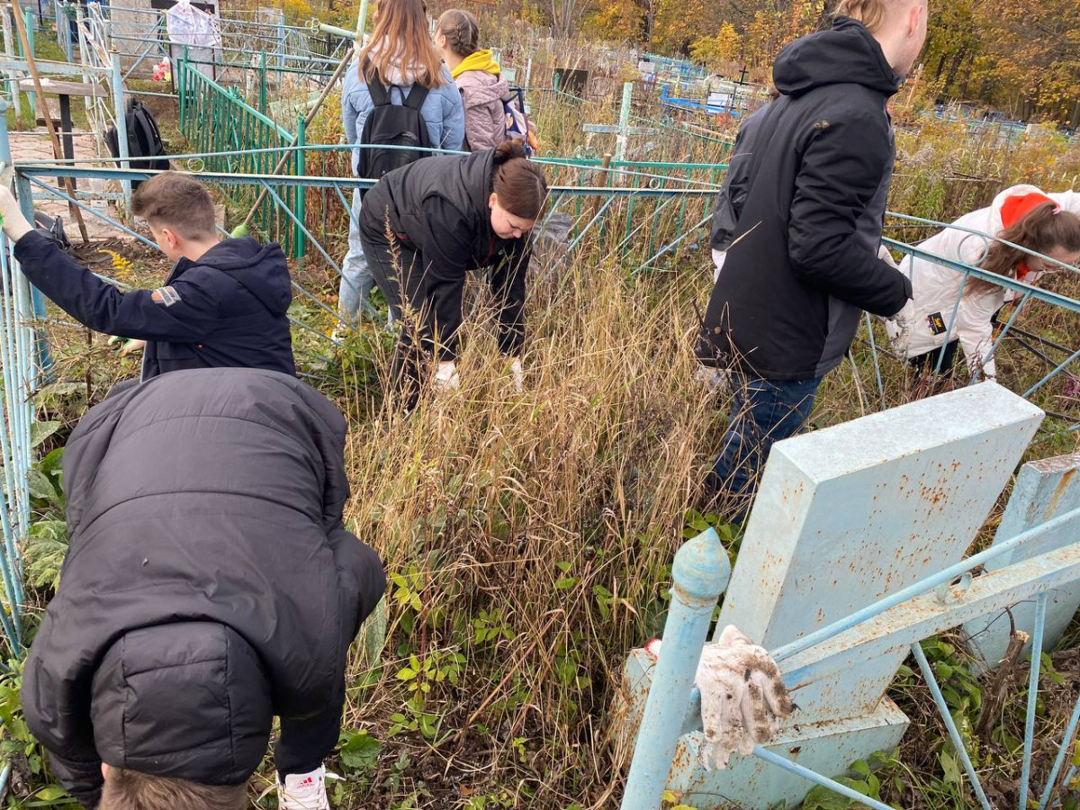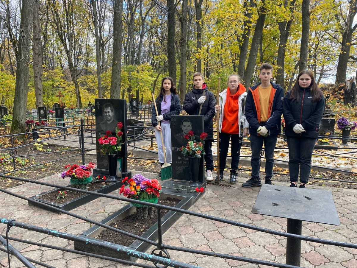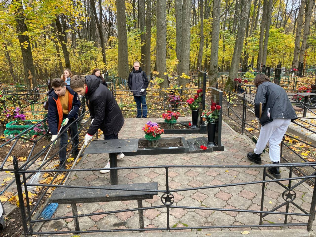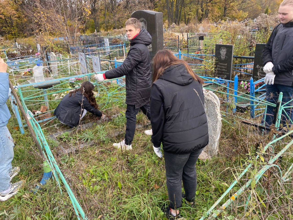 Десятиклассники впечатлились фильмом "Пять дней", в котором рассматривается понятие: созидательный труд, предложили социальную практику "Память в сердце - ЖИВА!"Совместно с педагогом нашего центра образования ребята привели в порядок несколько могил участников ВОВ и участника локальных войн. С могил была убрана листва, сухая трава и мусор. Реализуя практику была оказана помощь родственникам героев. Шевство над этими могилами будет вестись постоянно. Пока жива память о войне, на нашей земле сохраниться МИР! Помните через года, через века - ПОМНИТЕ!