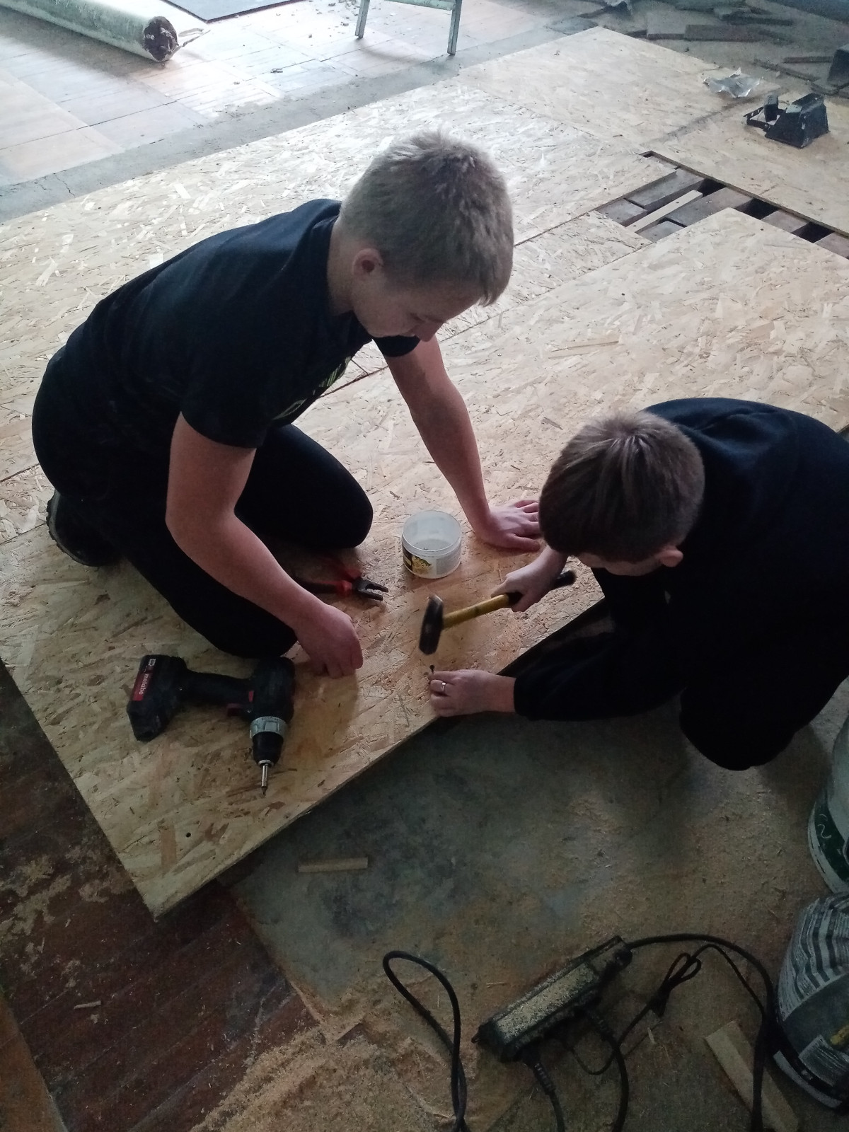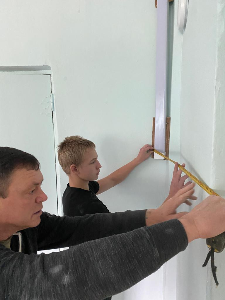 После просмотра фильма "Пять дней", обучающиеся 8 класса в предверии осенних каникул проявили инициативу в оказании помощи учителю физической культуры в благоустройстве и ремонте актового зала. Ребята изготавливали мини-сцену для актового зала и помогали в установке светильников, тем самым облегчив работу педагогу. Мальчики остались довольны своим делом, так как получили новые знания и приобрели необходимый для дальнейшей жизни опыт.