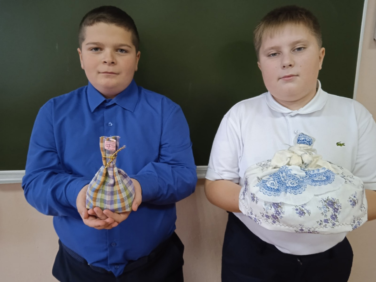 Своими руками они также сделали обереги для участников СВО на Украине. Ребята вложили частицу своей души в этот мощный оберег. А в мешочек вложили щепотку родной земли, несколько зёрен, чтобы в долгом пути человек не испытывал голод и лекарственную траву подорожник.