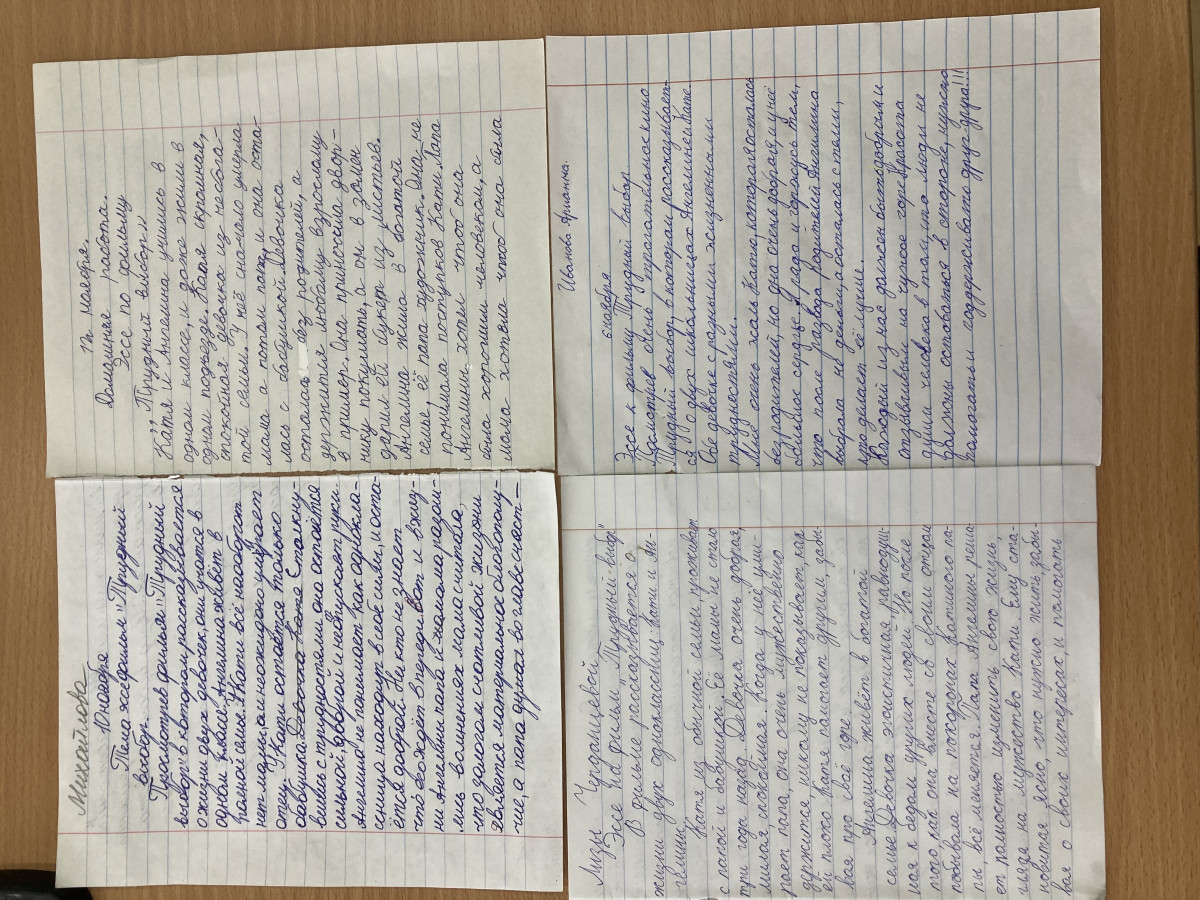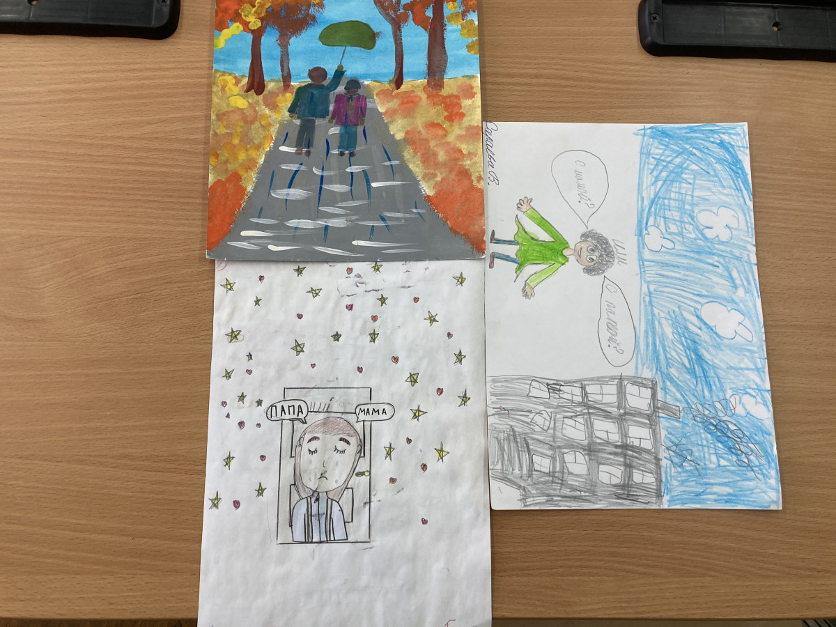 После обсуждения дети нарисовали рисунки эпизода из фильма. А также написали краткое эссе. Там дети выразили своё мнение по фильму.