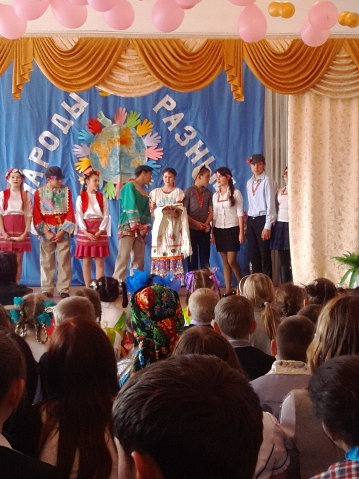 После просмотра фильма "Мост" во время обсуждения девятиклассники высказали предположение, что название фильма означает связь, единство разных народов. главные герои представители разных национальностей, разных интересов, но они общаются, помогают и дополняют друг друга. У нас в классе есть представители разных национальностей: русские, хакасы, тувинцы, татары, белорусы, украинцы, немцы и предложили поделиться информацией о культуре и традициях народов нашей страны. Родители присоединились к их идее, помогали с костюмами, в семьях совместно решали как представить культуры и традиции своего народа.
