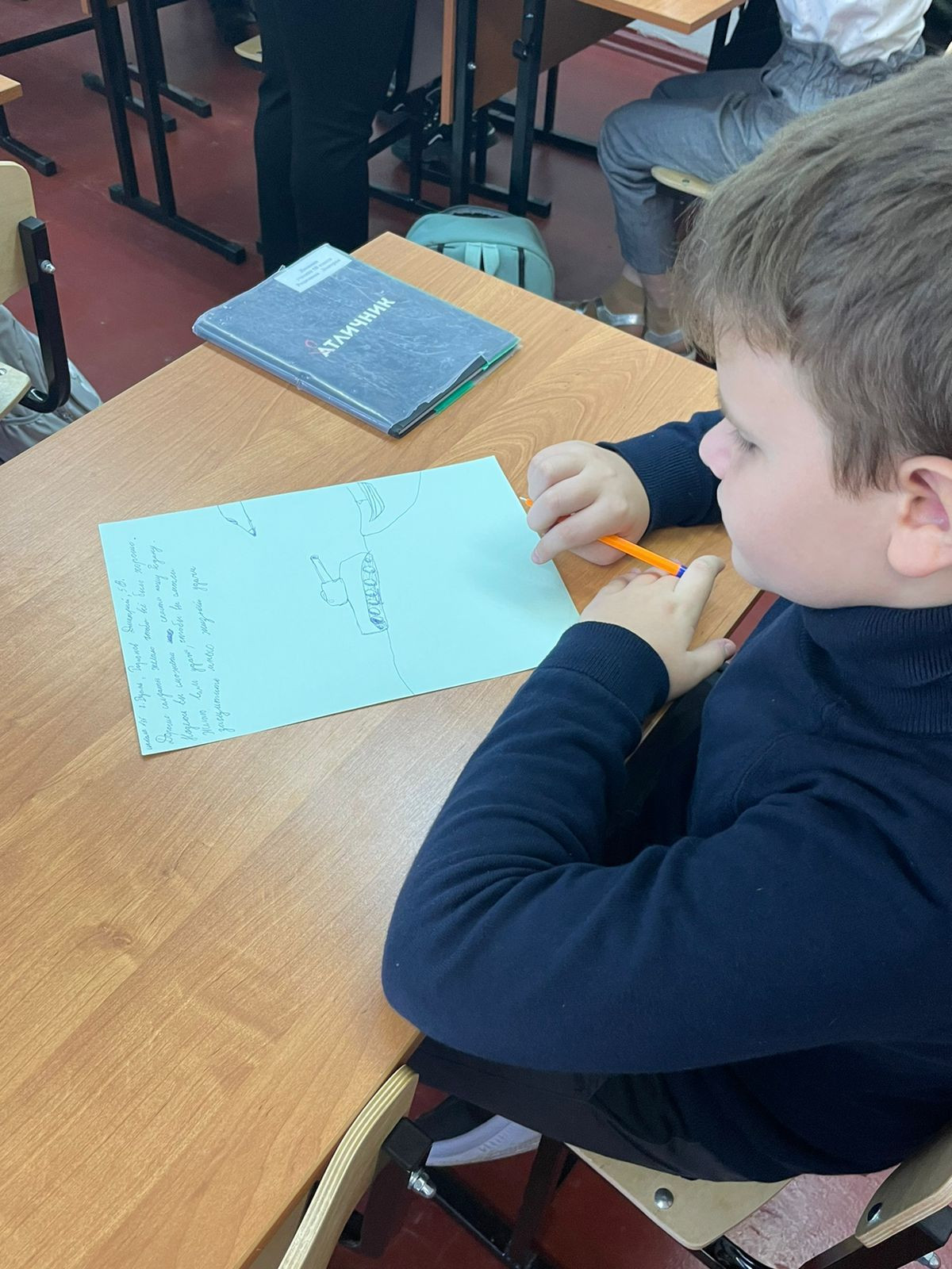17 октября ученица 7А класса, Шамова Елизавета, провела урок мужества в 6В классе. Она рассказала о СПО на Украине, о героизме российских бойцов. Во время этого занятия учащиеся класса приняли участие в акции "Письмо солдату".