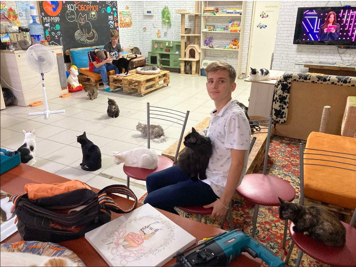 После просмотра фильма "Первое дело" волонтёрский отряд "Активаторы" школы-интерната №111 вышел к педагогам-руководителям с инициативой-предложением оказать практическую помощь приюту для животных "Кото Кафе". Ребятам была оказана поддержка в виде предоставления им необходимых инструментов для благоустройства помещения приюта. Придя на место, педагог по внешкольной работе Чаренцев А.В. организовал деятельность ребят. В результате были выполнены работы по благоустройству в помещении, содержание животных значительно улучшилось. Сами ребята смогли получить ничем не заменимое чувство собственной значимости и полезности и животным, и заботящимся о них людях.