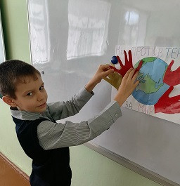15 ноября в 4 классе был просмотрен фильм "Другой мир"- фильм о будущем, к которому может прийти каждый, если только будет к этому стремиться. Просмотрев его, ребята поделились своими впечатлениями, одни нарисовали понравившийся им сюжет из фильма, другие нарисовали свою фантазию. А после предложили создать свой плакат(портал) , на котором изобразили мир без террора.