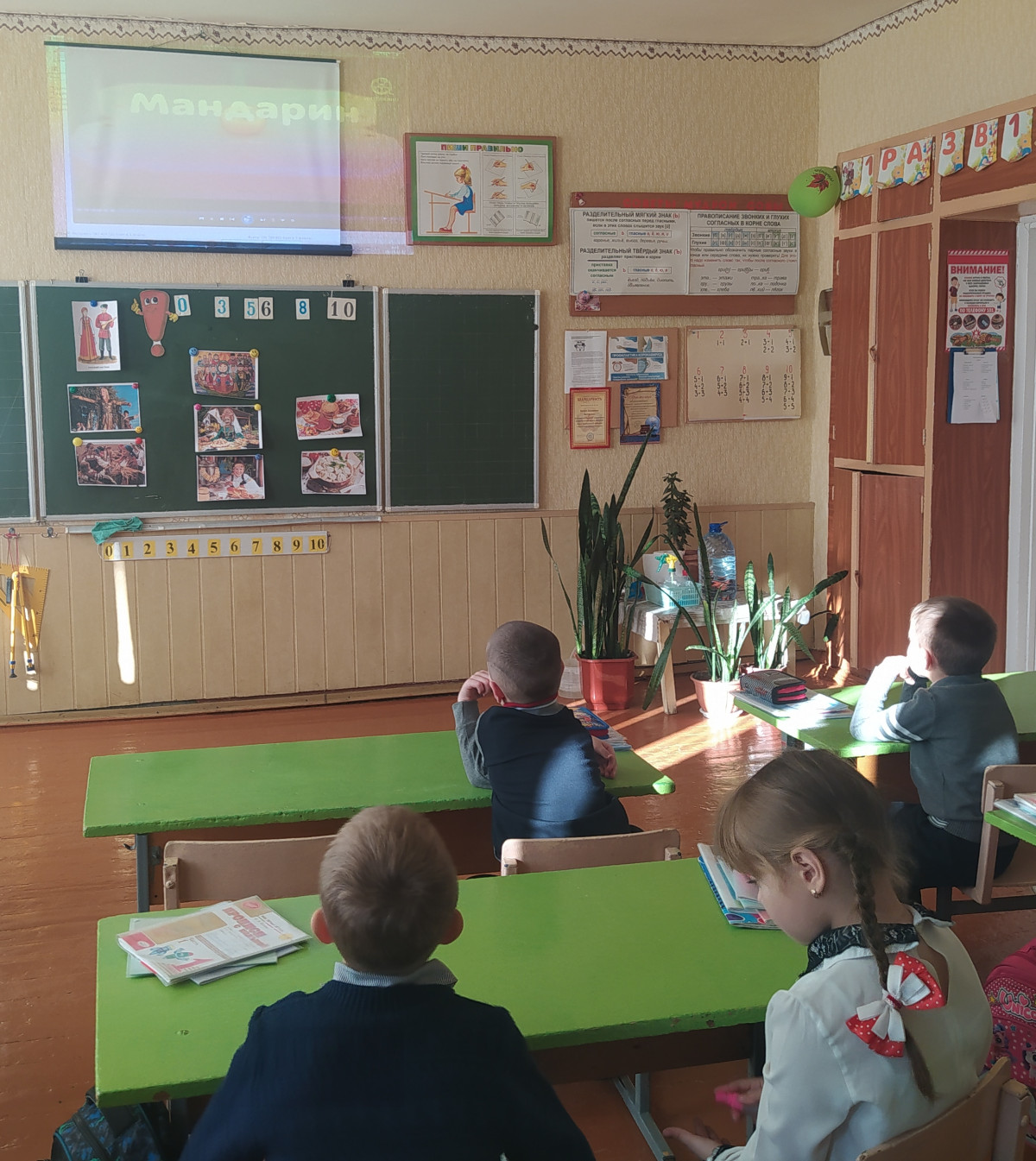 В ходе подготовительной работы к восприятию фильма ребята попробовали словесно описать, что такое радость и дружба, зависть и злоба. Помогали ребятам уточнить понятия слайды «радость-зависть». Пословицы и поговорки создали нам с ребятами доверительную атмосферу в классе. Учащиеся с интересом посмотрели фильм «Мандарин», высказали предположение, почему фильм назвали «Мандарин». В ходе спонтанного обсуждения все высказывали своё мнение о том, для чего был создан этот фильм и чему он учит. В такой работе важно многое: и то, что смотрим вместе, и какие чувства переживали дети в момент просмотра, и узнать, какой эпизод понравился больше всего и почему, и умение говорить, делать правильные выводы. Особенно малышам, которые разделяют только понятия «хорошо-плохо» и часто не могут принять позицию другого. Важно, что фильм закончился дружбой детей. Настя и Тимофей посадили рядом с человечком из мандарина свои игрушки, показывая тем самым, что они принимают дружбу Кристины и не обижаются на неё, радуются её победе над своей гордостью и завистью, её хорошему поступку.