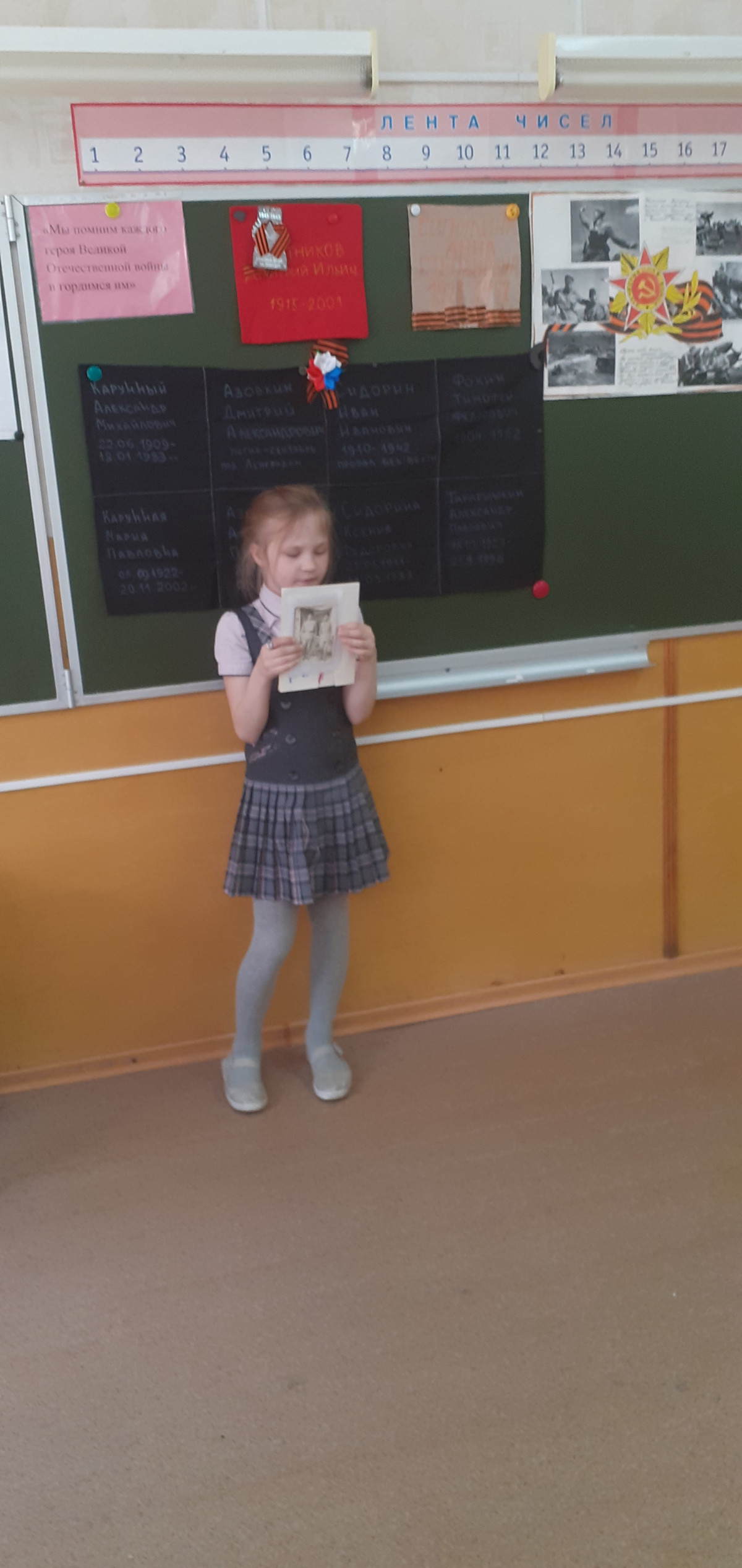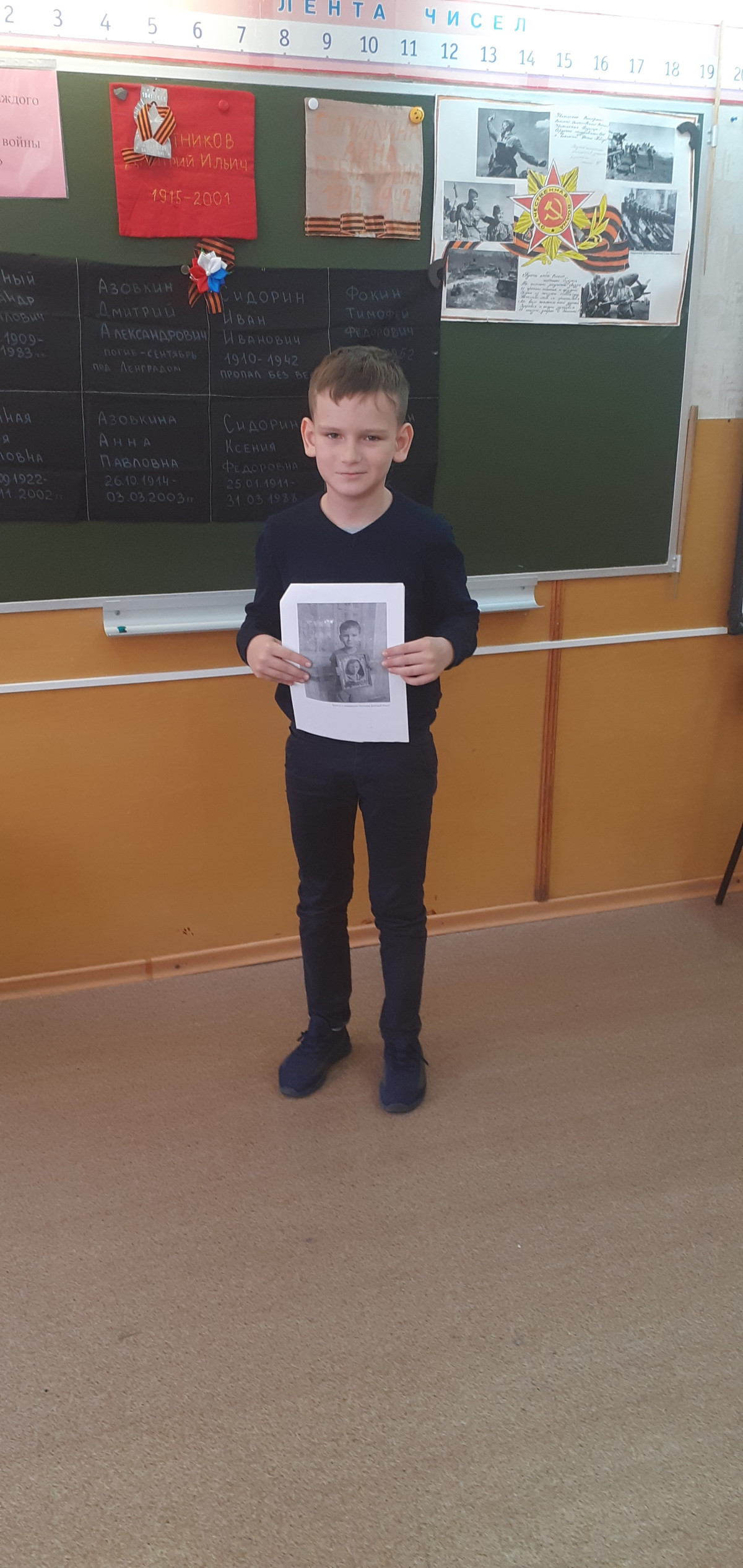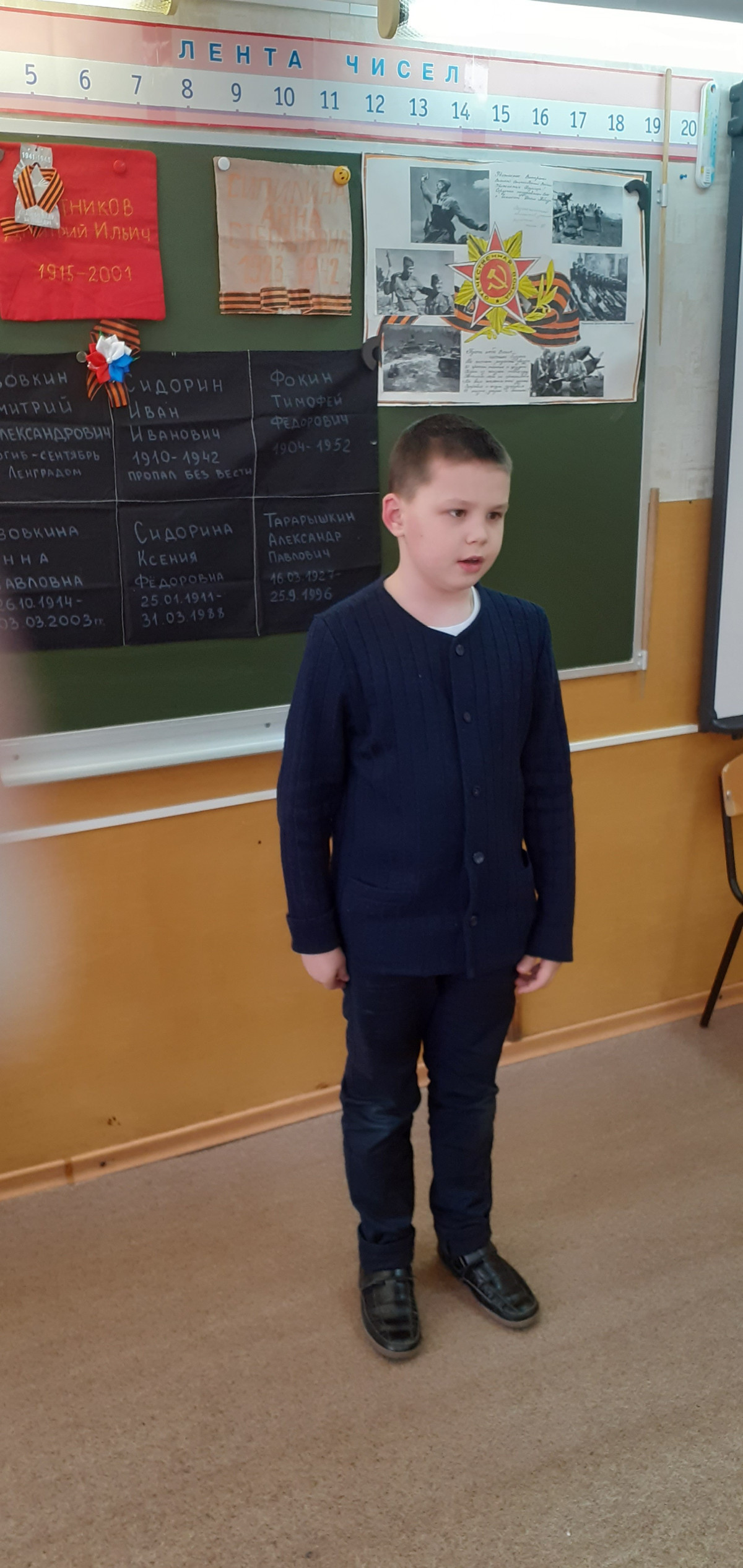 Учащимися класса просмотрен фильм Наследники победы. После обсуждения фильма появилась идея узнать и рассказать о близких, которые принимали участие в военных действиях и работали в тылу во время Великой Отечественной войны. С большим интересом рябята вместе с родителями взялись за дело. Результат -проекты, которые ребята представили в классе, и дополнили странички школьной Книги Памяти.