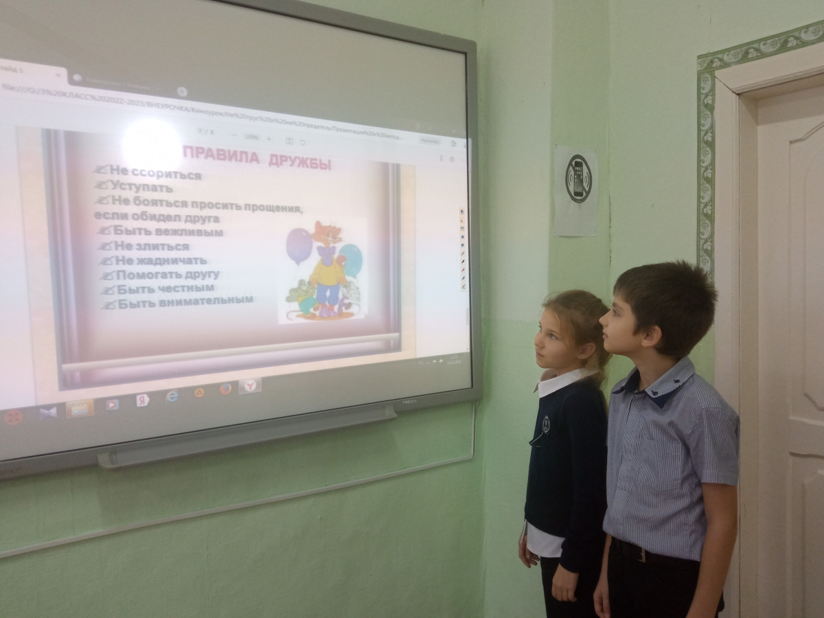 В начальных классах часто бывает так, что ребята ссорятся. Фильм "Не трус и не предатель" ещё раз позволил детям задуматься над темой дружбы. В этом возрасте дети учатся правильно общаться, дружить. Вместе с ребятами мы рассуждали о качествах настоящего друга, о правилах дружбы. Ведь всегда интереснее вместе работать, отдыхать, играть. У ребят возникла идея организовать в классе игровой уголок, чтобы интересно проводить перемены. Они принесли в класс различные настольные игры. И теперь порой даже не слышат звонка на урок. Да ещё и ребята из соседних классов заглядывают в гости. Дети стали ближе друг к другу. Вместе играем, вместе учимся дружить.