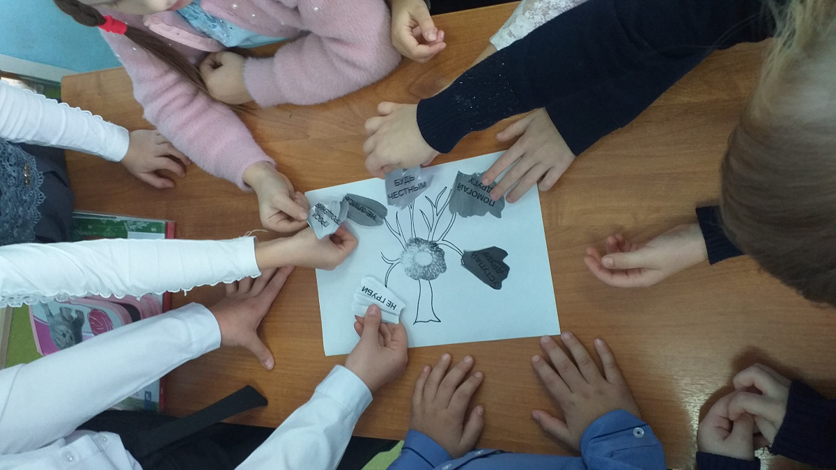 По инициативе детей прошла беседа на тему «Дружба». Каждый ребёнок высказал свою точку зрения, что такое - «Дружба». С учащимися нарисовали и составили дерево дружбы, на дереве появились слова: «Доверяй», «Не обманывай», «Помогай», «Храни секреты», «Защищай» и др. Повторили правила дружбы и решили поступать честно и справедливо к своим друзьям.