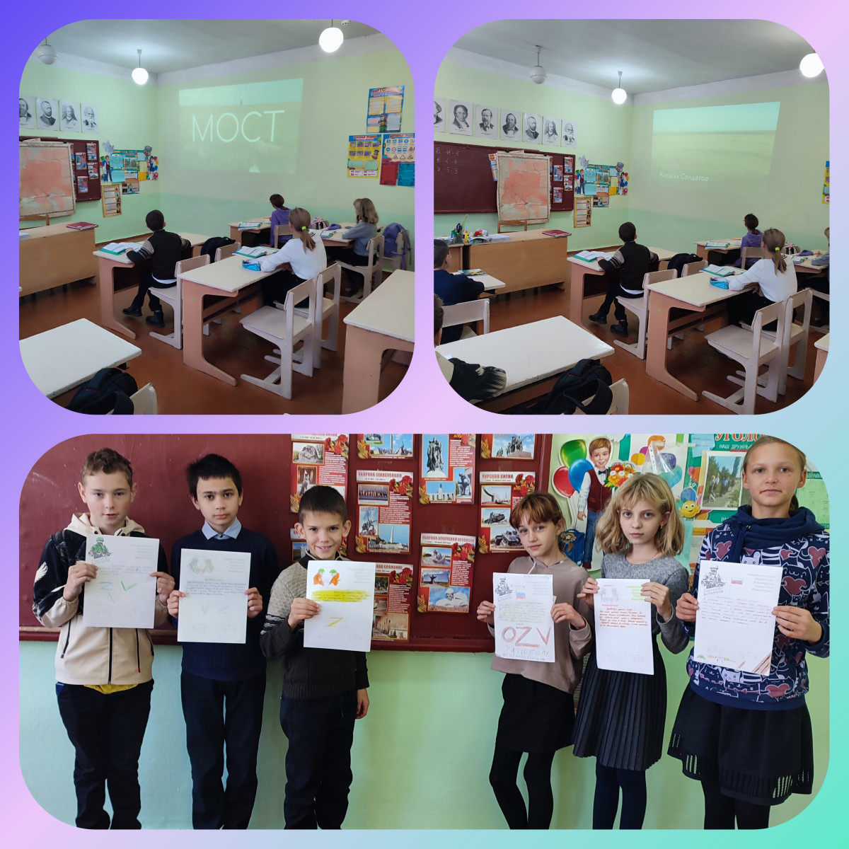 Ребята 6 класса просмотрев киноурок "Мост" решили принять участие в акции "Письмо солдату". Так же как и вся школа ребята написали слова поддержки солдатам - участникам специальной военной операции. Приняли активное участие вместе с родителями в акции "Посылка солдату"