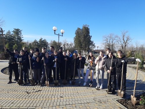 В октябре месяце обучающиеся 9-11 классов посмотрели фильм 5 дней. После просмотра фильма ребята решили заняться укрытием роз к зиме в сельском сквере.