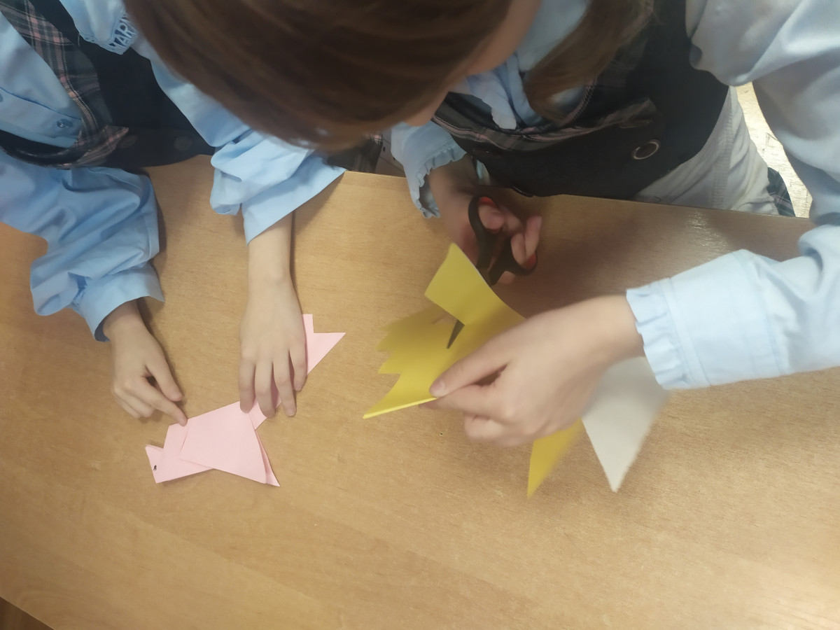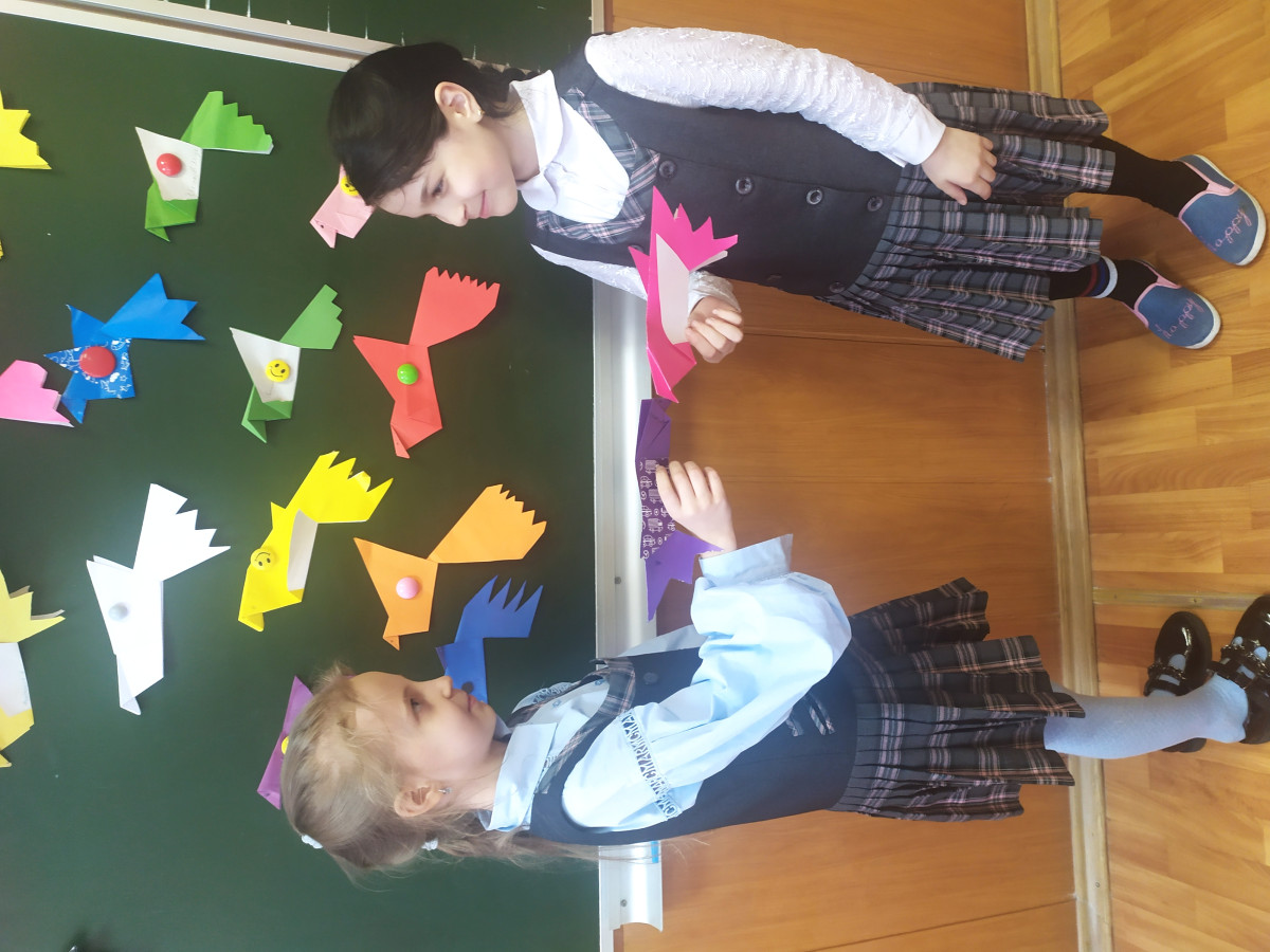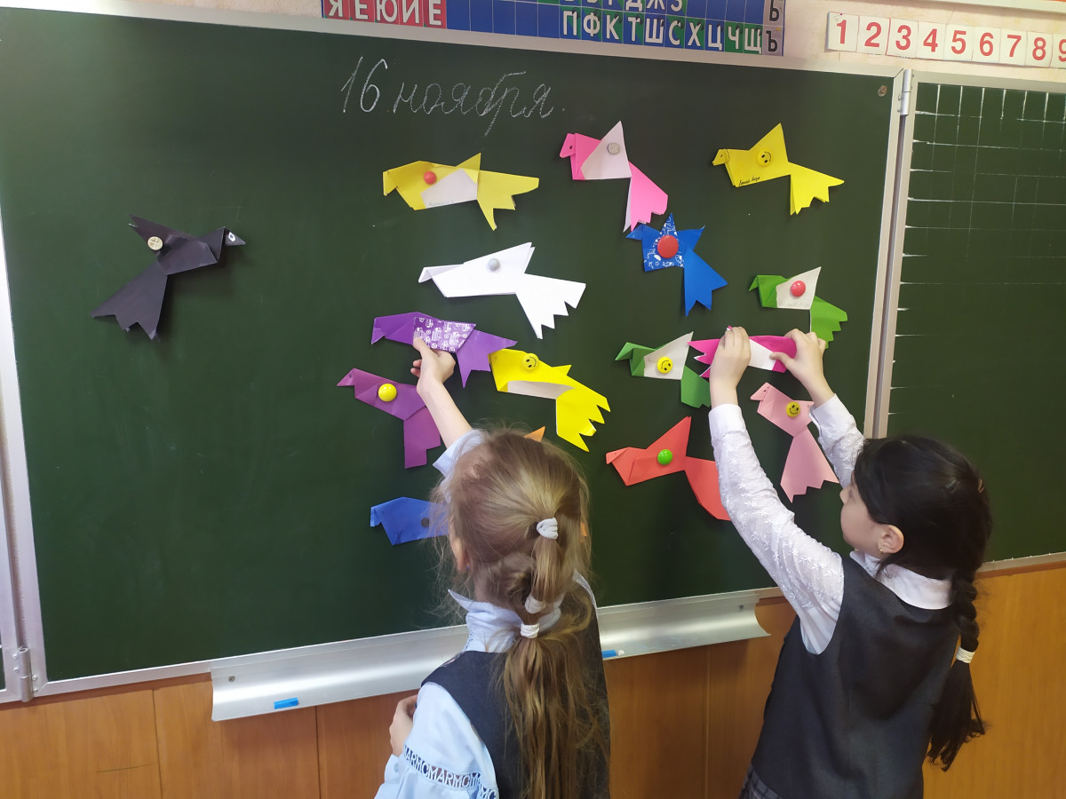 Ребята изготовили птиц радости в технике оригами. После просмотра фильма "Мандарин" обсудили понятия "зависть " и "радость" На доску учитель прикрепила чёрную птицу- символ зависти. После обсуждения ребята выбирали одноклассника и произнося фразу "Я рад за тебя, что ты.... " вручали ему свою птицу. После этого каждый прикрепил фигурку на доску. Удалось помочь многим ребятам поверить в себя, в то, что он небезразличен другим. Посмотрев на доску, ребята сделали вывод, что радость гораздо лучше зависти и сможет её победить. Занятие очень понравилось ребятам. Многие захотели сделать ещё несколько птиц, чтобы раздать своим друзьям. Ведь дарить радость это так здорово!