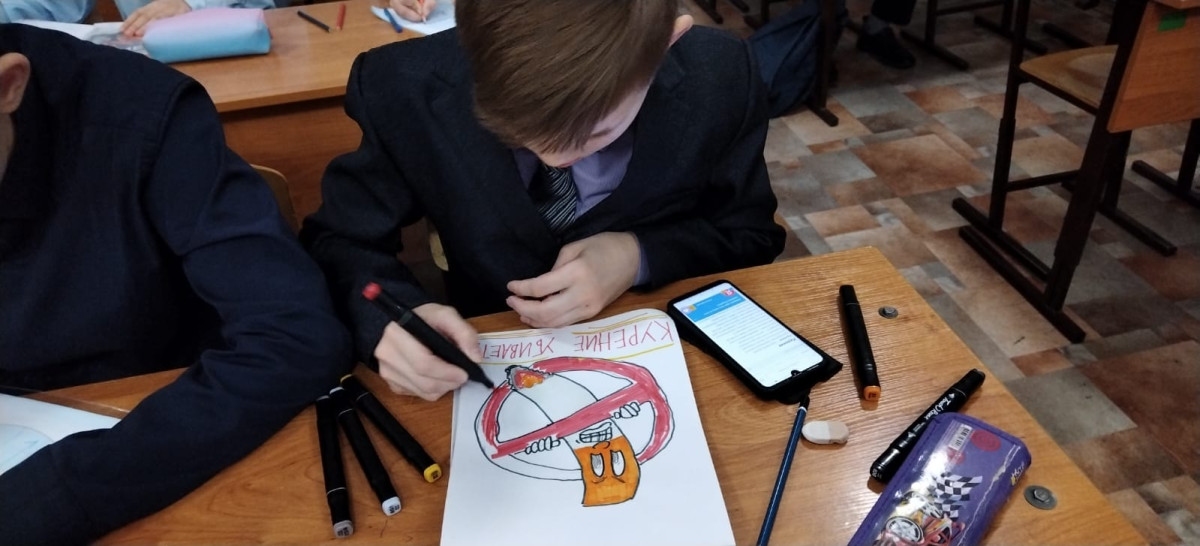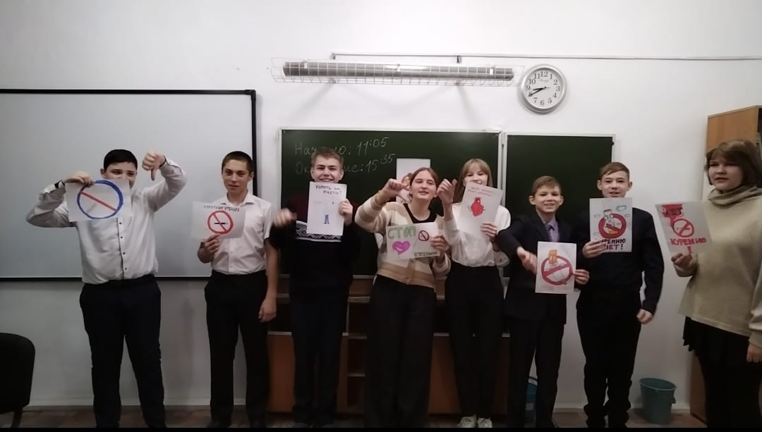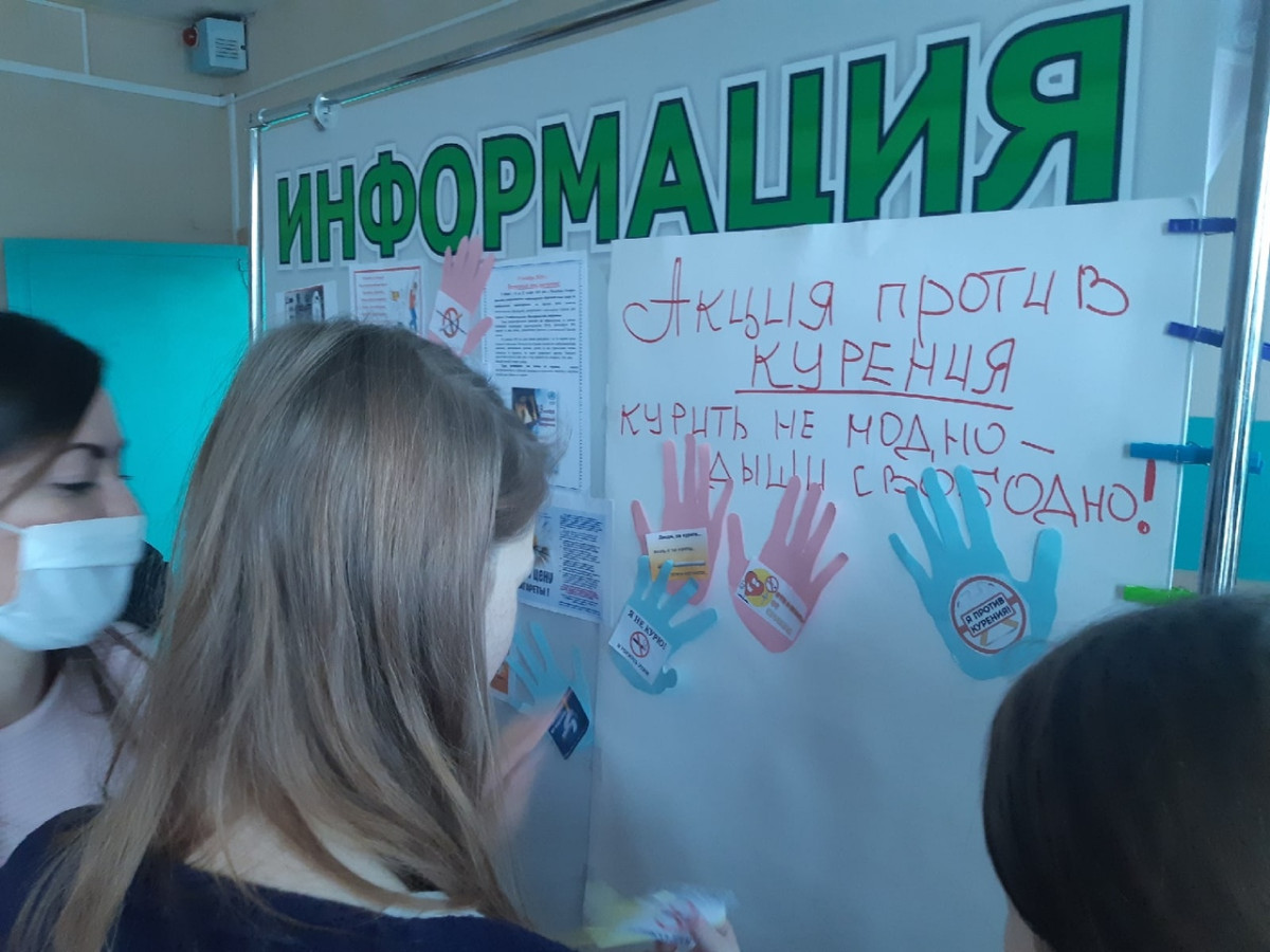 Очень много девчонок и мальчишек балуются электронными сигаретами, поэтому на этой неделе ученики нашей школы провели акцию "Мы против сигарет". Ученики 7А нарисовали рисунки, на стенде школы вывешали информацию о акции, также раздали буклеты о вреде курения.