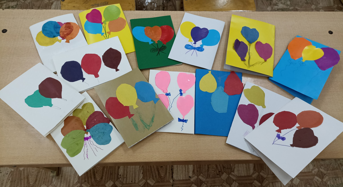 На 2 неделе на уроке " Технологии" сделали поздравительные открытки.