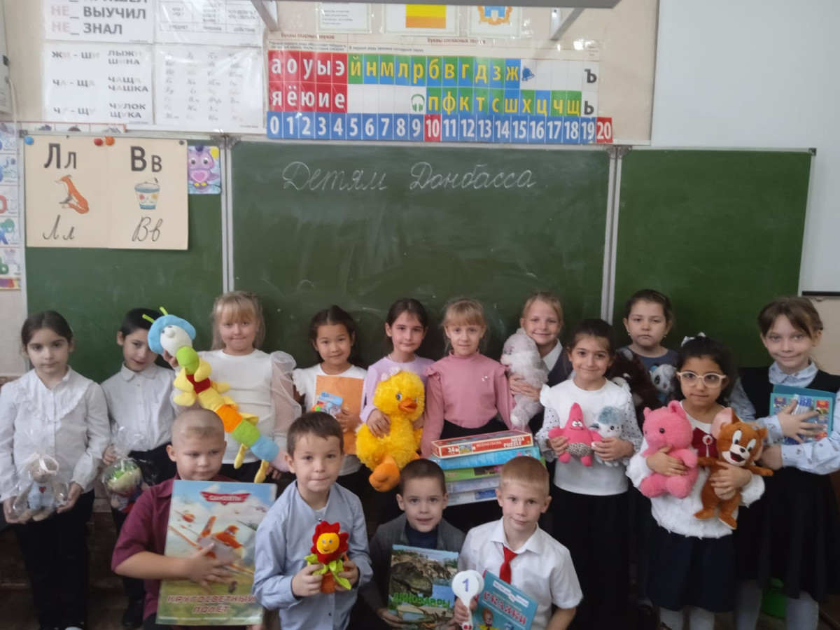 Учащиеся 1-х классов посмотрели фильм о жизни детей Украины и остались неравнодушными к событиям в этой стране. К этому событию в нашей школе проходила акция "Детям Донбасса". Ребята приняли в ней активное участие .Узнав о трудностях маленьких жителей, они принесли в подарок игрушки, книги, канцелярские товары. Администрация школы и Районная Администрация оказали помощь в сборе и отправлении подарков детям.