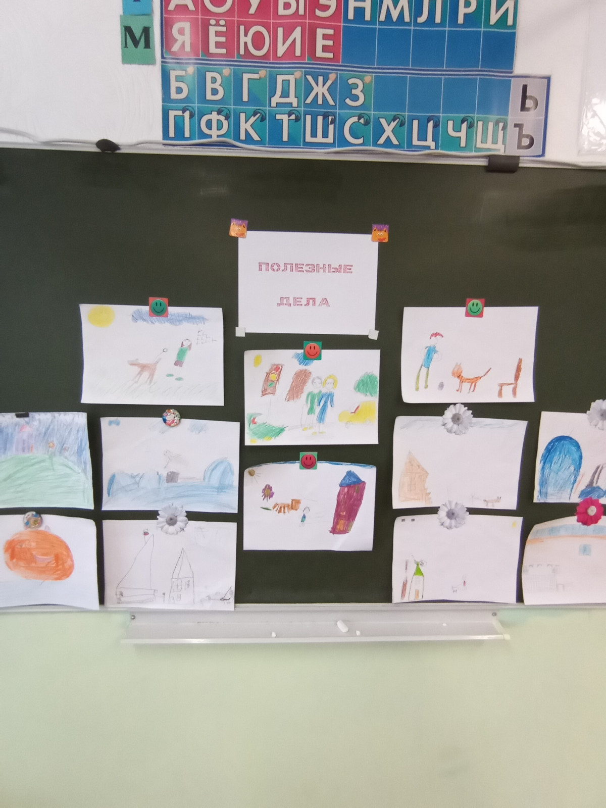 5. Дети поняли, что нельзя требовать от родителей покупки дорогих вещей и что человека красят не вещи, а красивые поступки. В конце занятия ребята нарисовали рисунки, отображающие их полезные дела.