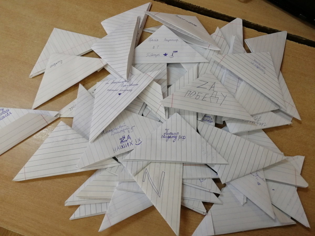 Посмотрев фильм "Наследники Победы" учащиеся 8-х классов обсудили что такое патриотизм и как проявляется. От детей поступило предложение поддержать солдат, защищающих мирное небо. Они написали слова поддержки и благодарности военнослужащим, которые участвуют в спецоперации на территории Украины. Администрация школы поддержала инициативу и помогла отправить письма.