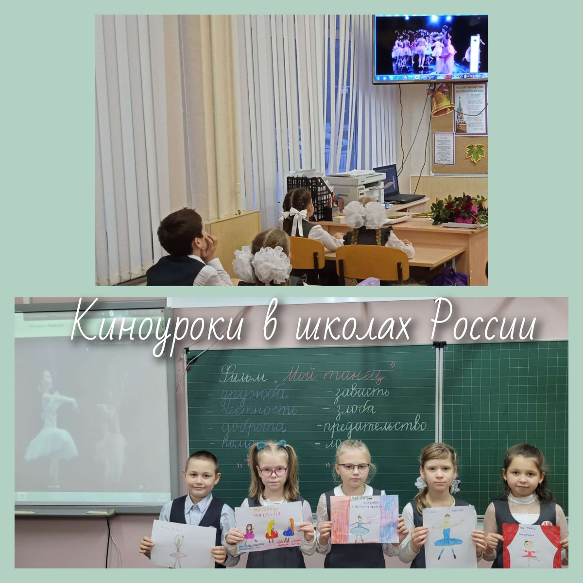 В рамках рееализации проекта "Киноуроки в школах России" ученики начальной школы посмотрели фильм "Мой танец". Поле просмотра обсудили понятия честности, справедливости, дружбы. Свои эмоции выразили в рисунках и аппликациях. Позже этии работты ребята решили подарить своим родителям.