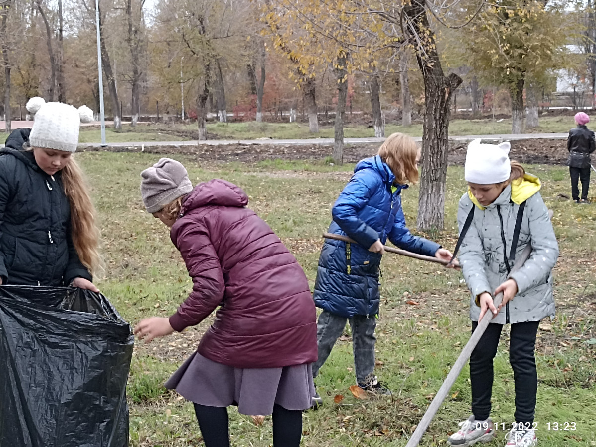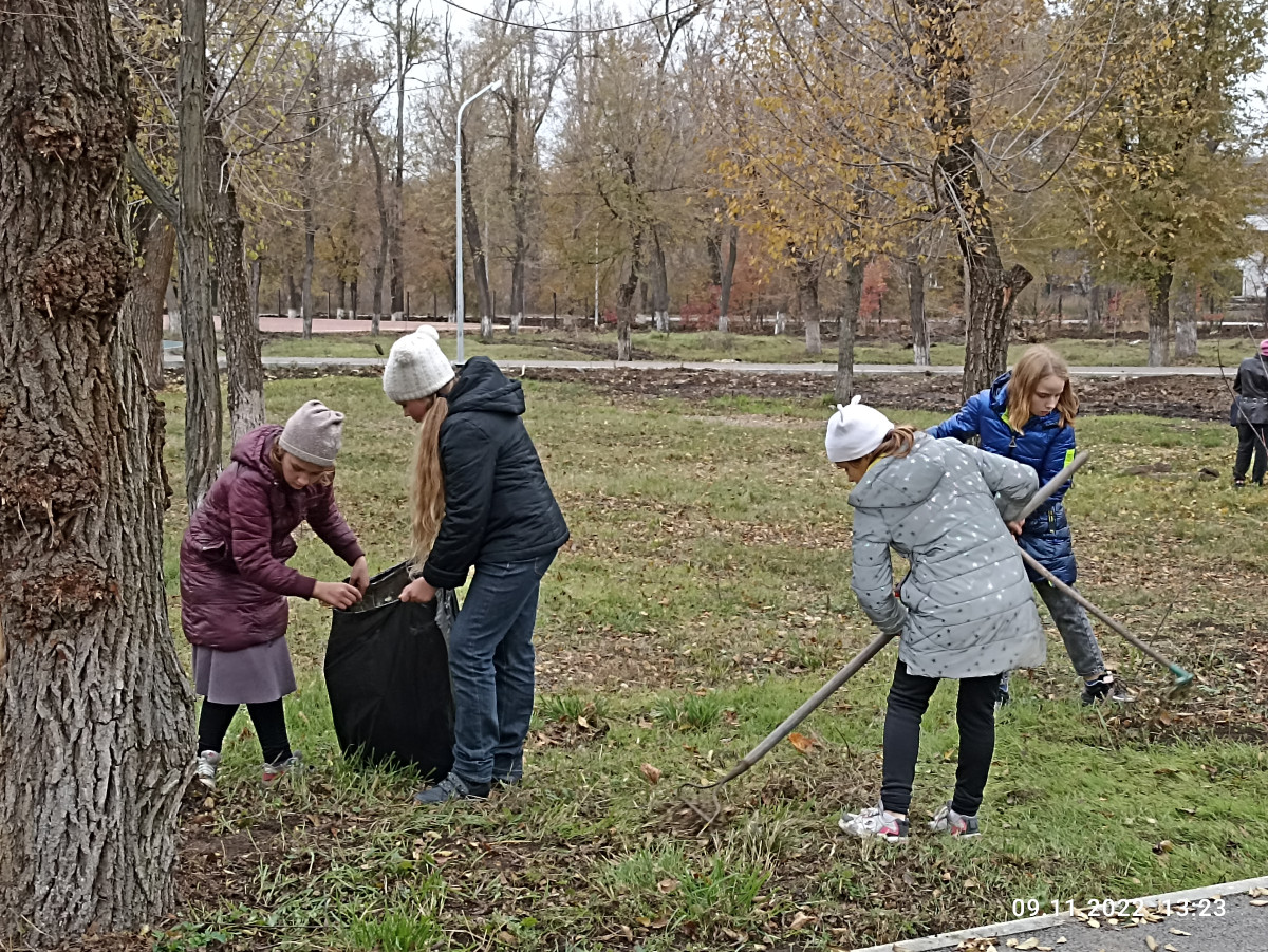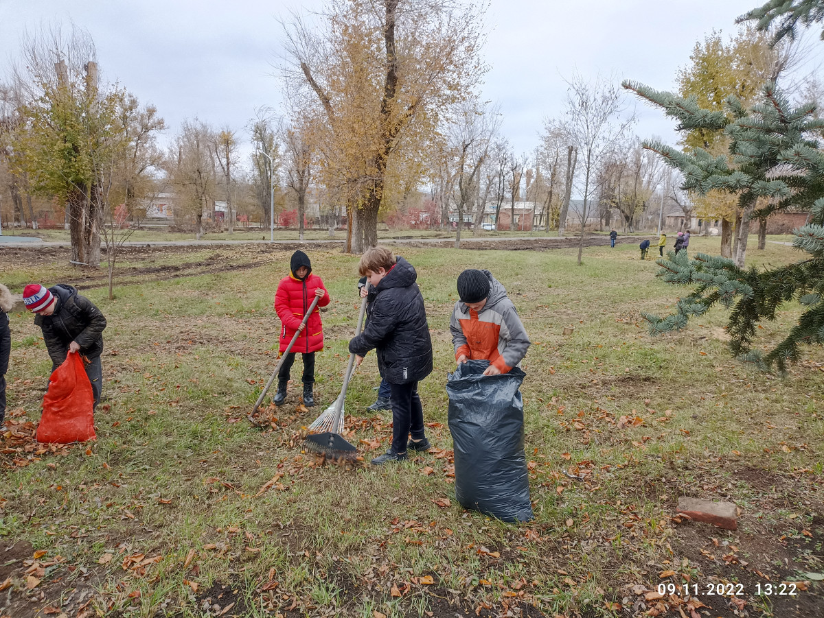 Помогали очищать территорию парка в посёлке Соколово-Кундрюченском