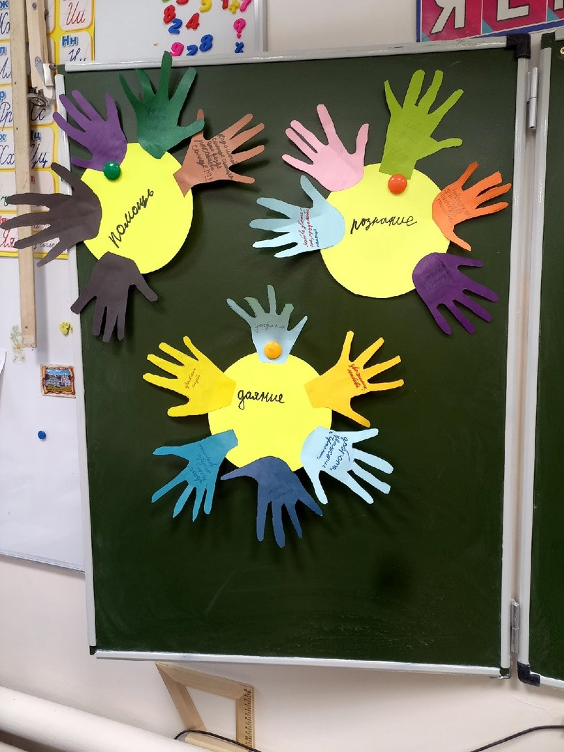 2-на след.день каждый ребенок принес свои три солнца (с обозначениями "даяние, познание, помощь"). Рандомным образом мы совершили обмен солнцами. Таким образом, каждому ребенку светят 3 солнца, которые создавал не он. Легенда продолжилась задачей сохранить их свет своими поступками.
