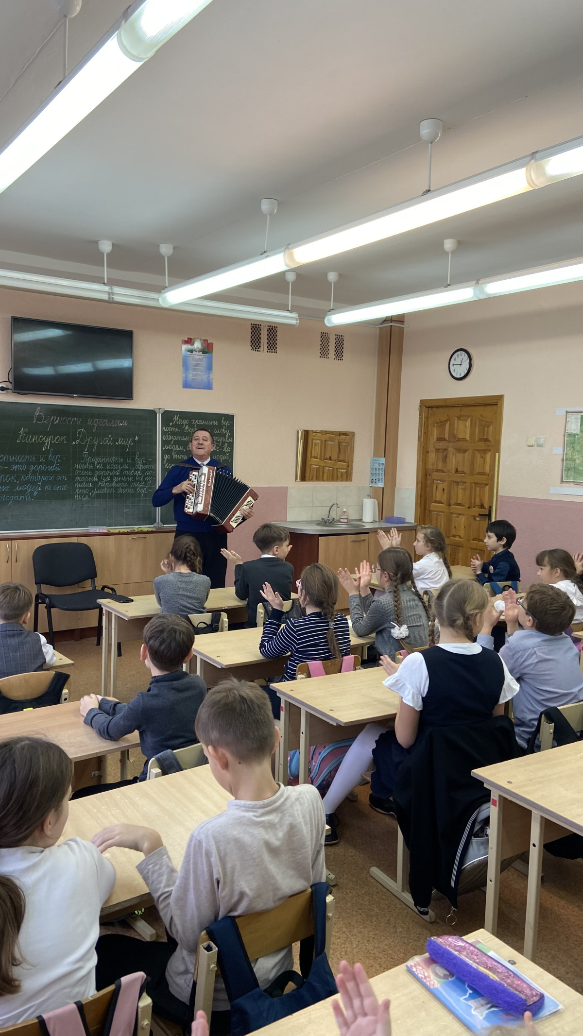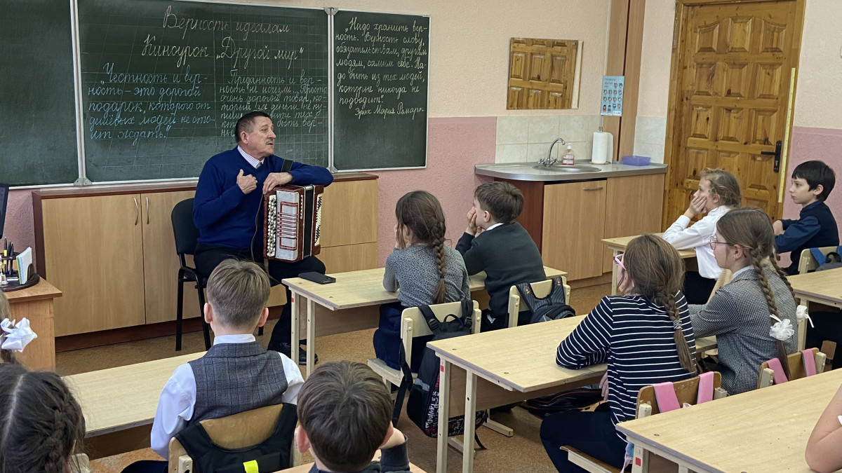 Ребята слушали воспоминания гостя о детстве, о том, как зарождалась любовь к музыке, как он заработал на первый баян, где и когда работал, осуществляя свою детскую мечту. ! А потом были и песни хором под баян, и танцы, и вопросы, и фотосессия.
