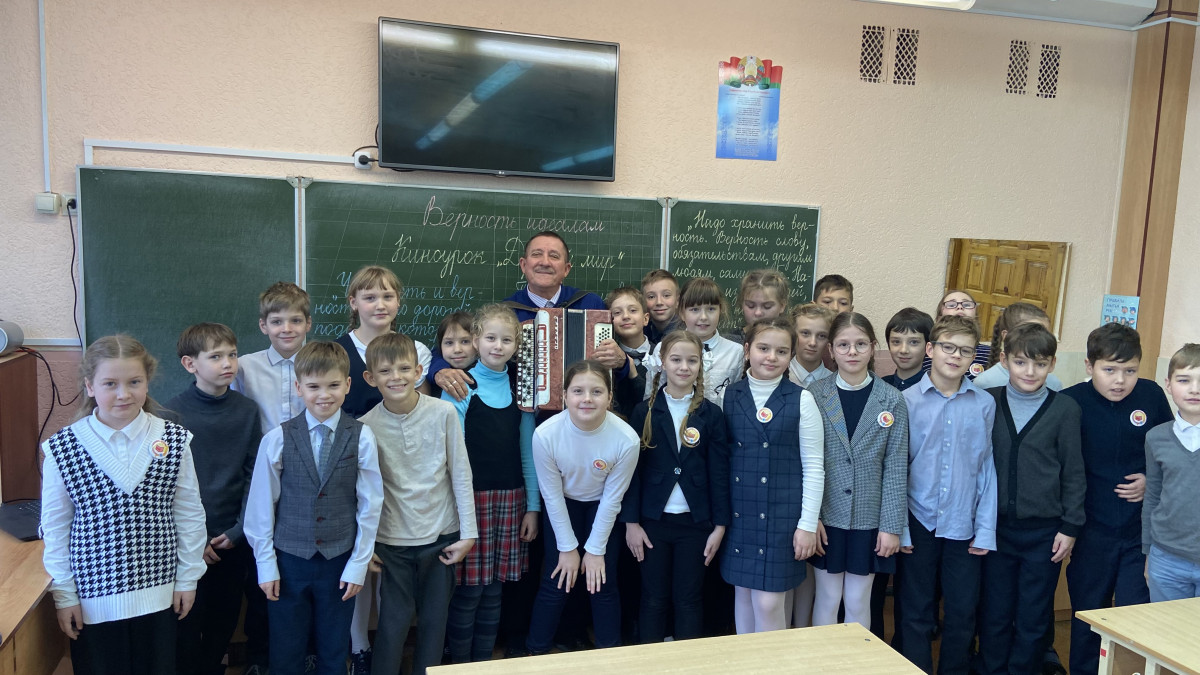 17 ноября в рамках проекта «Киноуроки в школах мира» по теме «Верность идеалам» в 4 «А» классе прошла встреча с педагогом гимназии Святуном Александром Максимовичем. Александра Максимович - педагог, музыкант, композитор, рассказчик и просто добрый отзывчивый человек. Он - автор гимна нашей Гимназии, автор гимна лицея, автор песен про наш родной город - Новополоцк, про реку, протекающую здесь, - Западную Двину. Александр Максимович - инвалид по зрению.