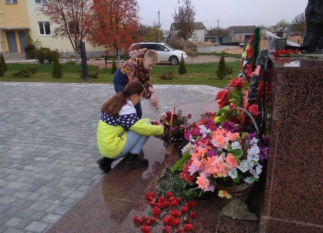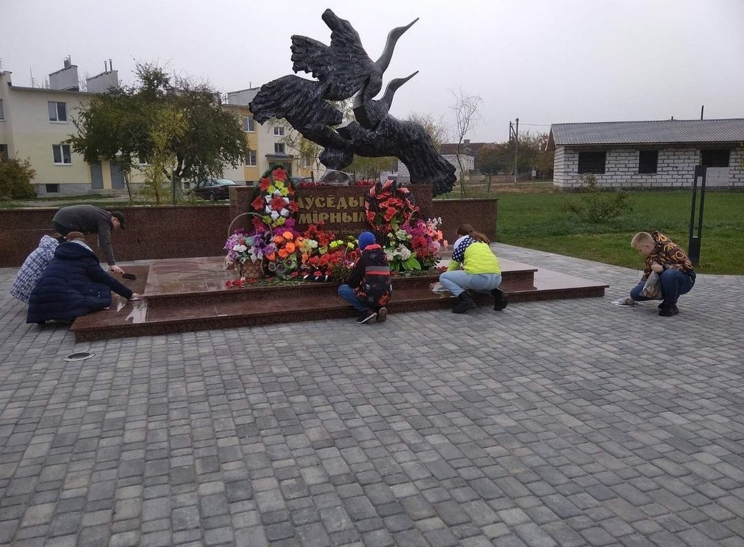 3. Учащиеся навели порядок на территории памятника: убрали мусор, опавшую листву, подмели территорию. Почтили память погибших летчиков минутой молчания, возложили цветы Героям Беларуси.